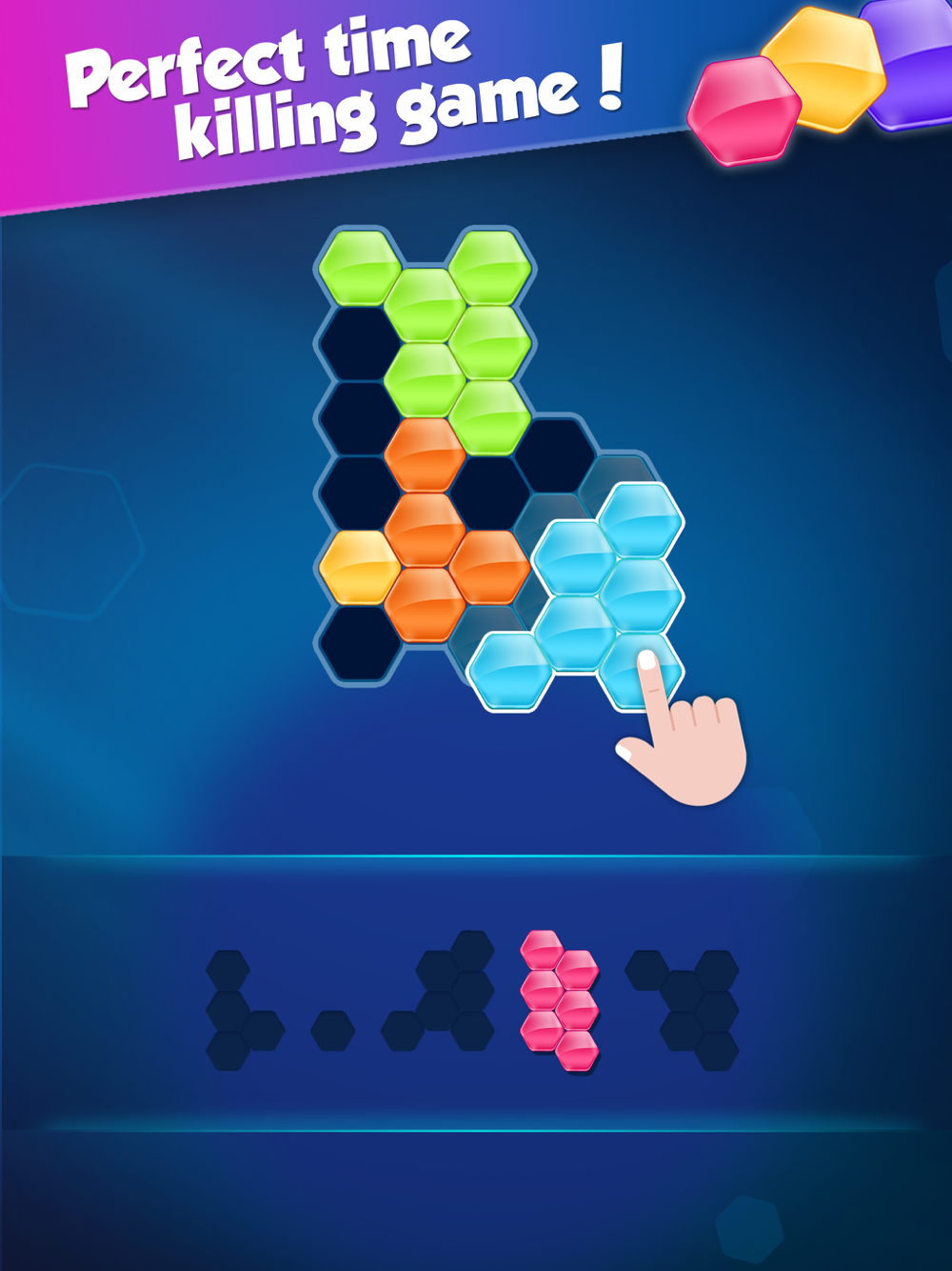 Your puzzle skills will be put to the test with this new angle on the classic dissection puzzle game! Our unique hexagonal pieces will stretch your mind in ways you never imagined in this addictive puzzle game. Enjoy the satisfaction of pieces fitting neatly in place, filling the board with a burst of color! With each block that fills the gaps, your ability will grow – but so will the challenges!