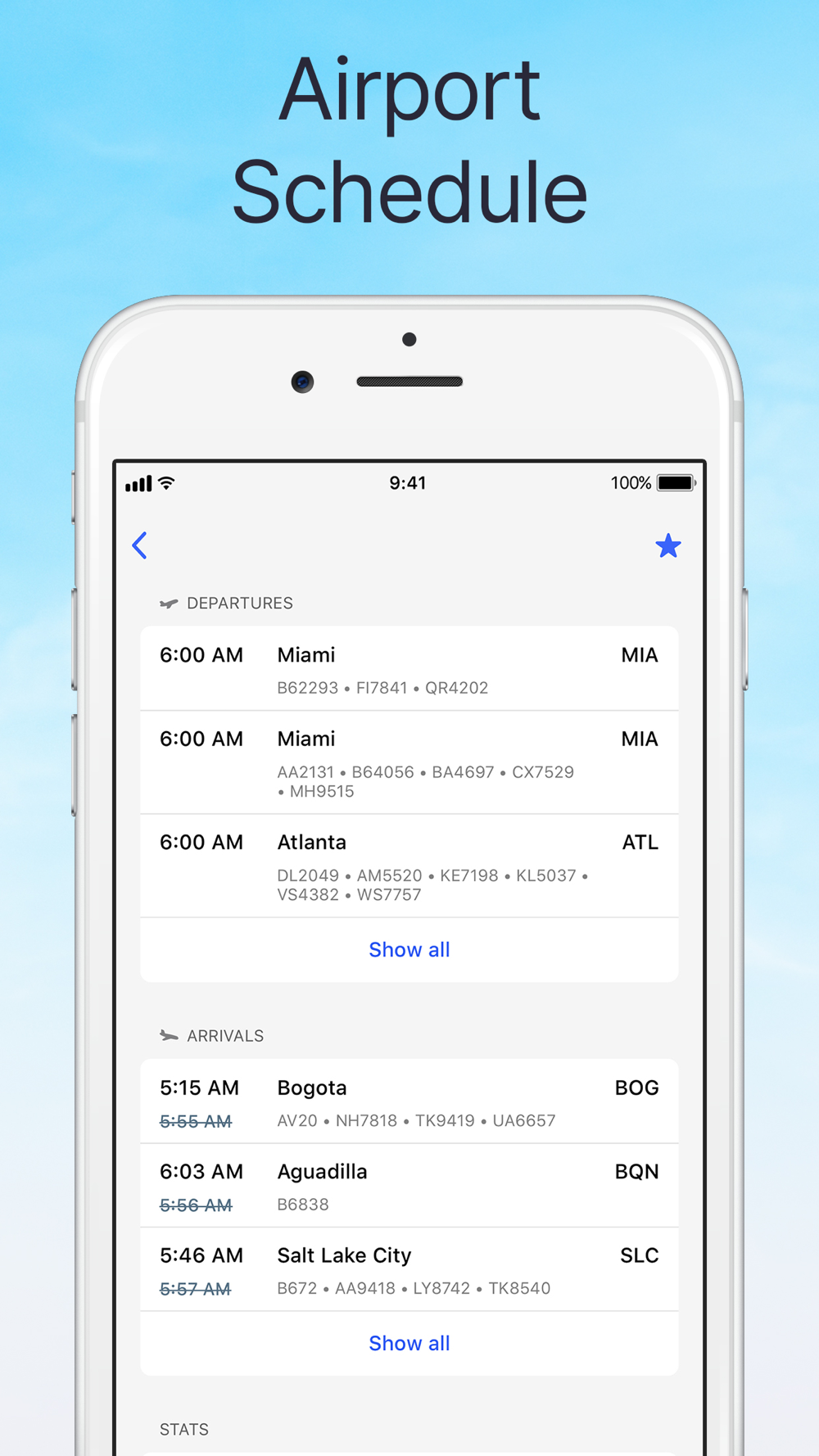 * Find up-to-date airport information that covers accurate departures and arrivals schedule, airport timezone and local time, its location and weather forecast