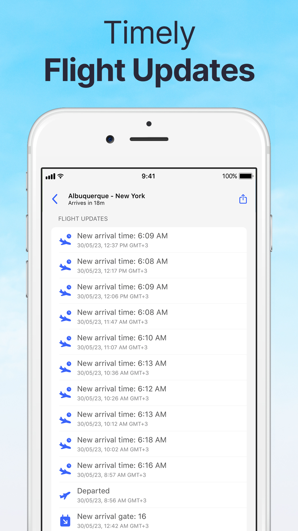 * Get notified about the flight schedule changes with handy alerts: be aware of the flight status, canceled flights, new departure and arrival time and more