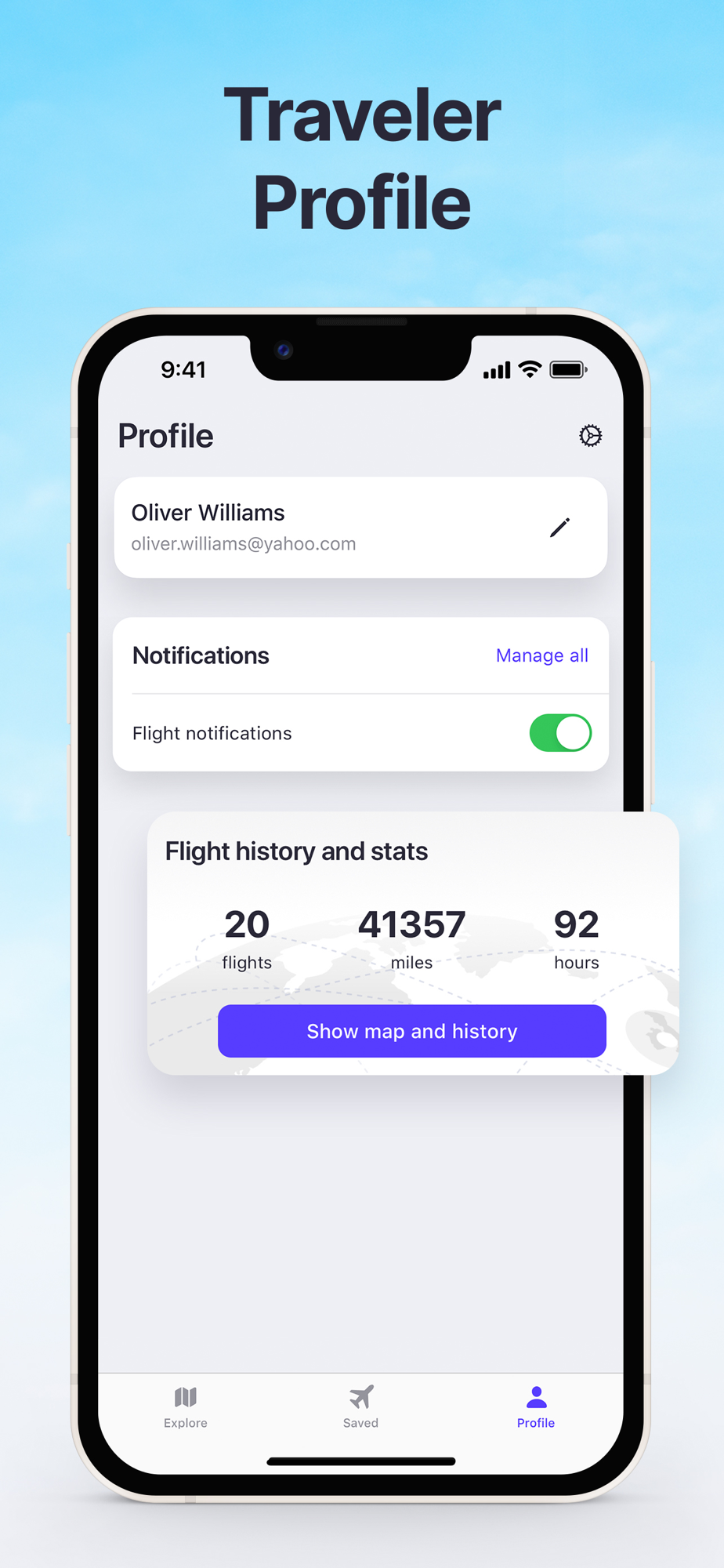 * Get detailed information on flights: from aircraft characteristics and picture to its route and schedule