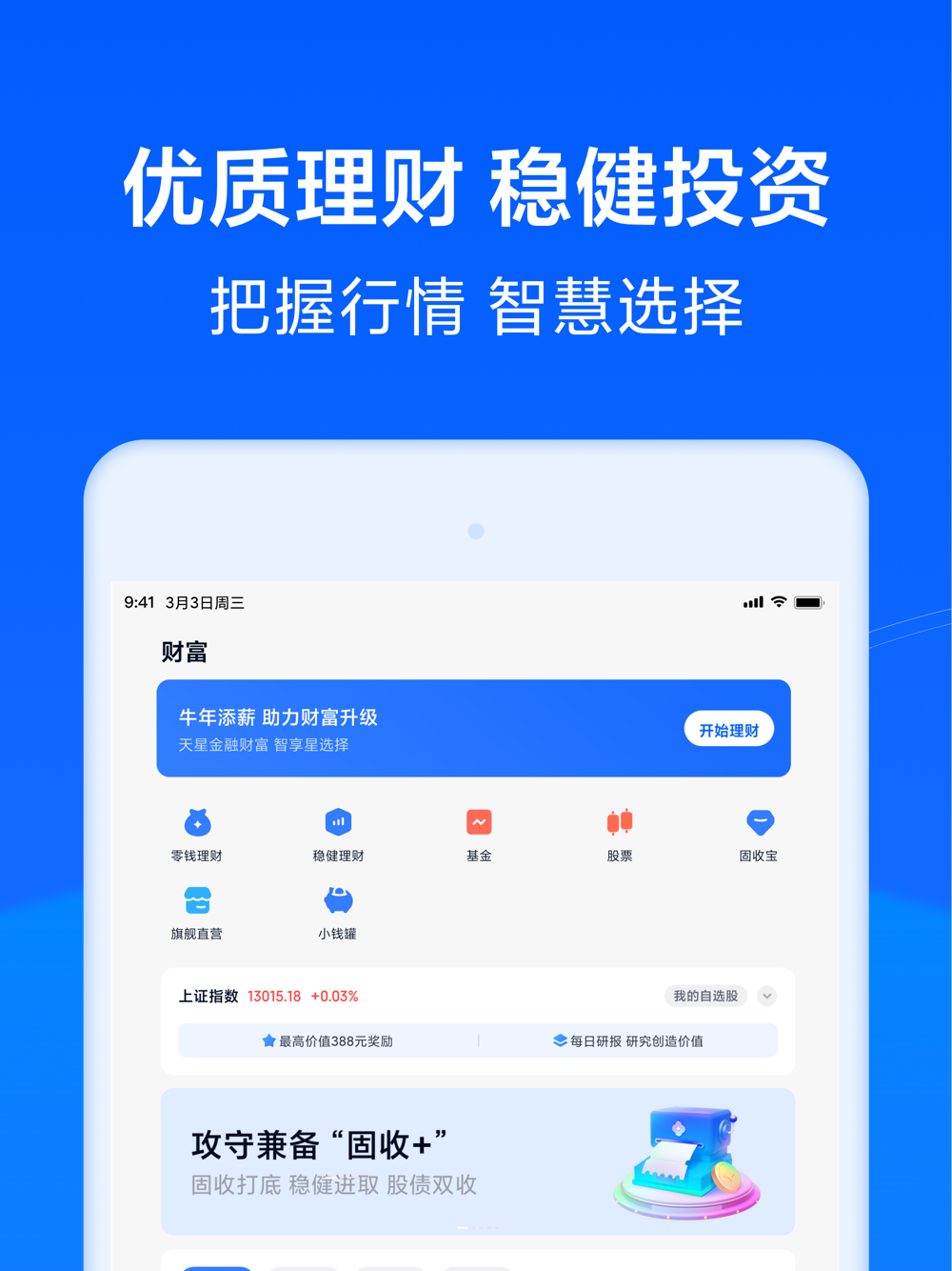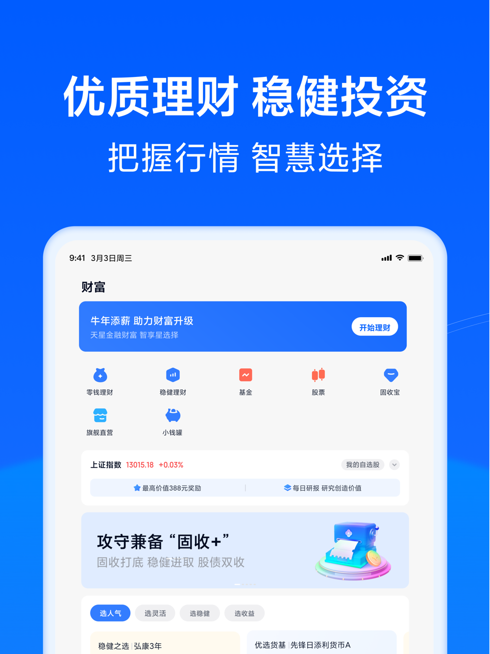 天星金融于2015年5月正式上线,通过与多家大型金融机构合作,并基于自身大数据及风控能力优势,为用户提供安全、专业、多元、便捷的一站式金融服务