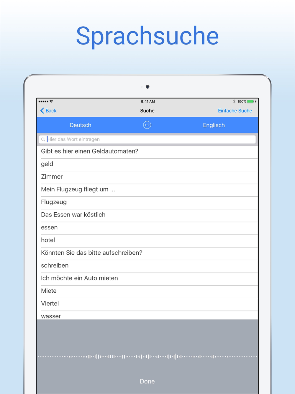 * Wechsele mit nur einem Tap vom Deutsch-Englisch zum Englisch-Deutsch Modus.