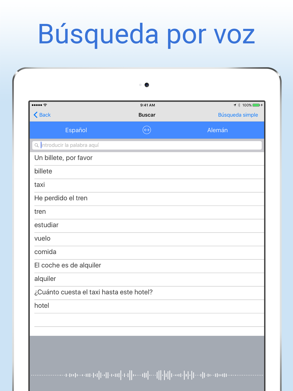 * Escriba en el teclado su búsqueda o use la búsqueda por voz en su idioma nativo para simplemente decir la palabra que usted desea traducir.