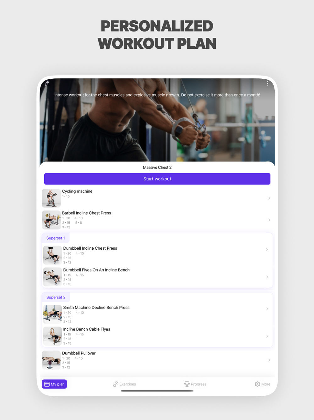 • Create a personal training plan using the large library of exercises for different muscle groups.