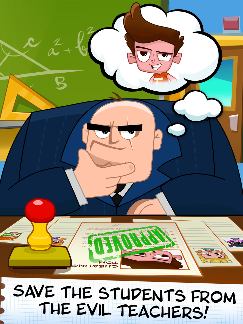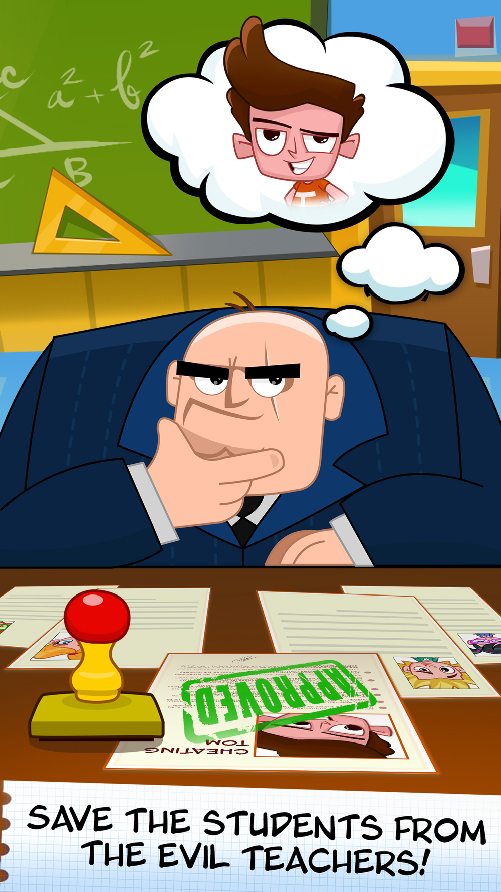 Tom’s gotten so good at cheating his way through school, that he’s been mistaken for a genius! He’s even been invited to a special genius school. Something shady is going on - turns out the faculty is sucking out the students’ super brains with a brain-sucking machine and using their genius minds to take over the world! Help Tom graduate without getting his brain sucked out!