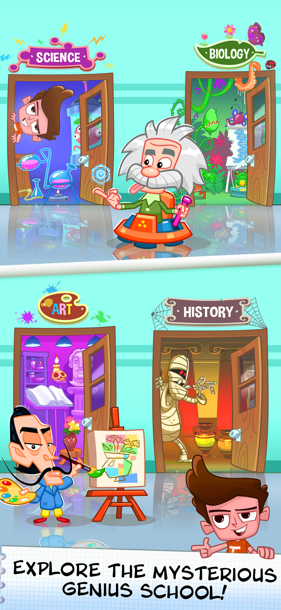 ~~> Help him cheat his way through biology, history, art, science and sports worlds!