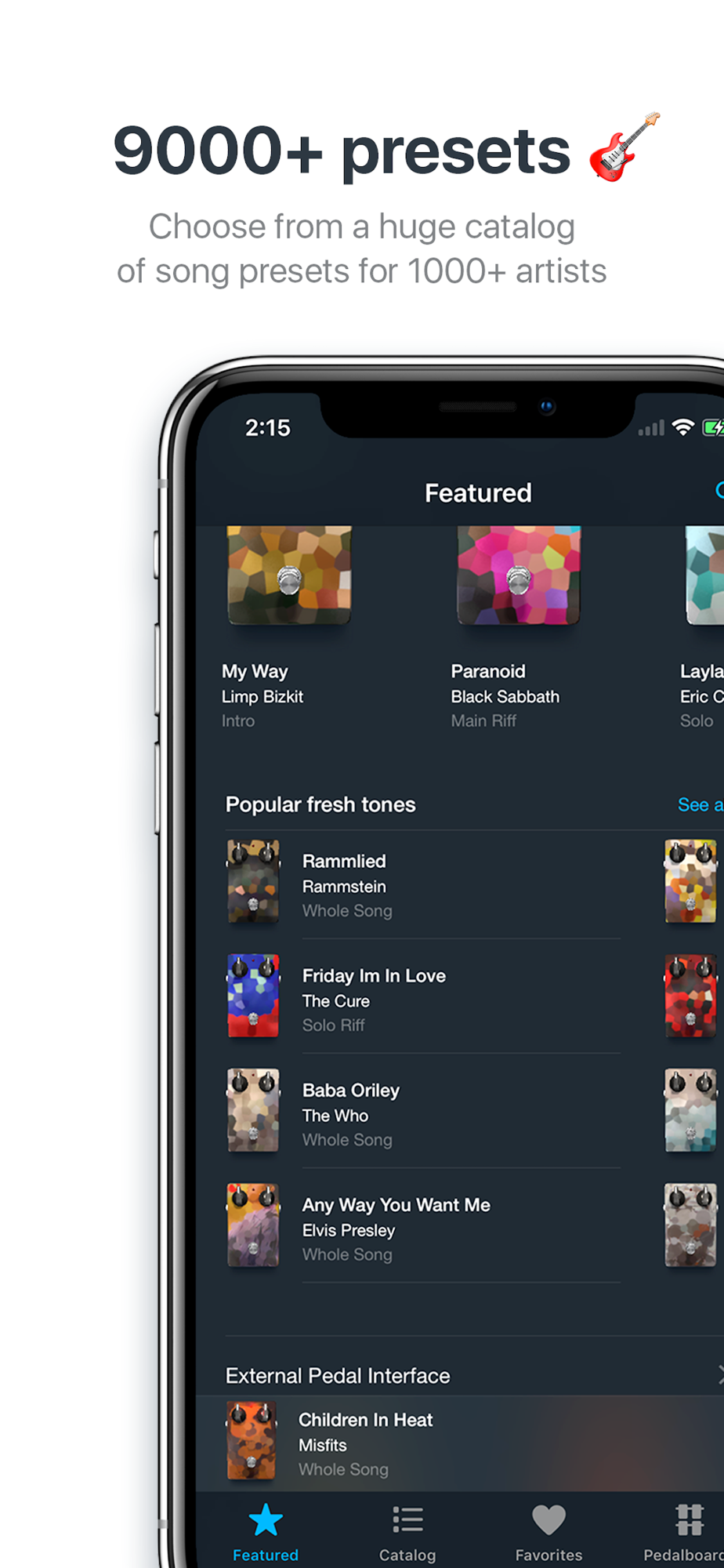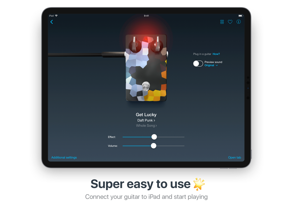 Tonebridge gives you the sound of the original song without special guitar knowledge—just plug in your guitar into iPhone or iPad and start playing. Choose from 9000+ song presets from light acoustic sounds of "Come As You Are" to crushing heavy roars of "Master Of Puppets".