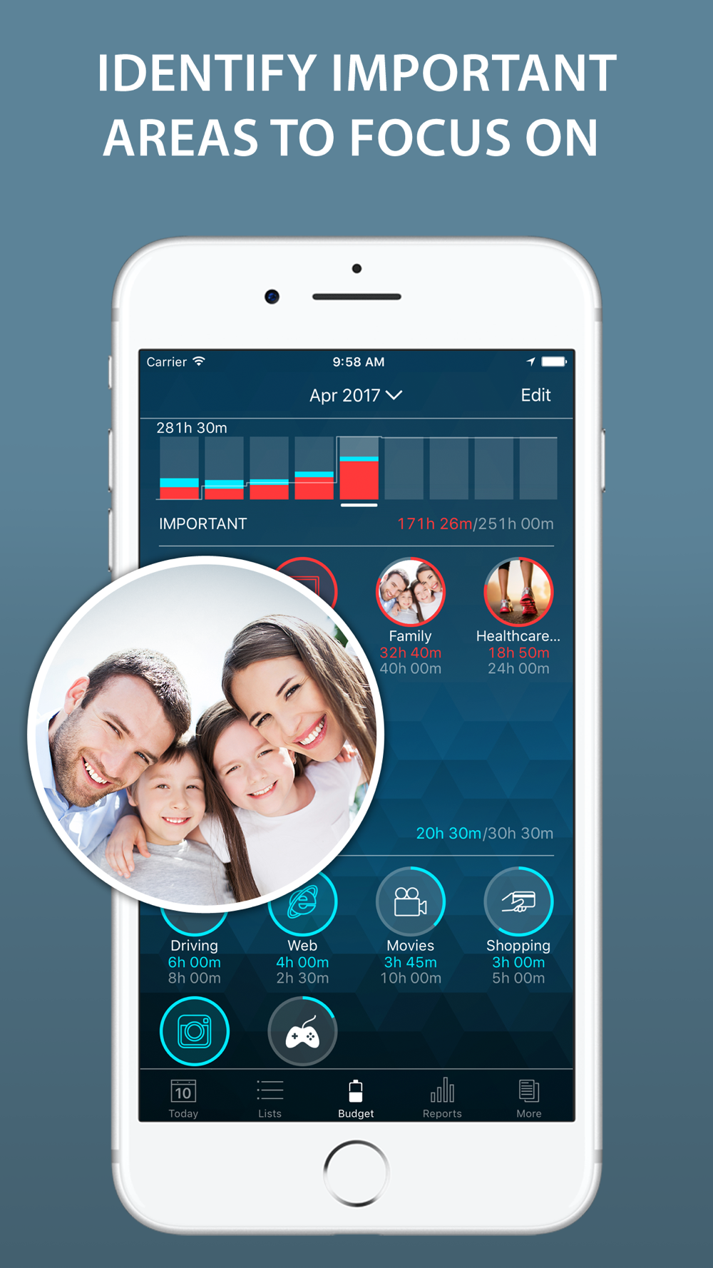 Time Pro is about evaluating, planning and managing everyday life. Track time and stay focused on priorities.