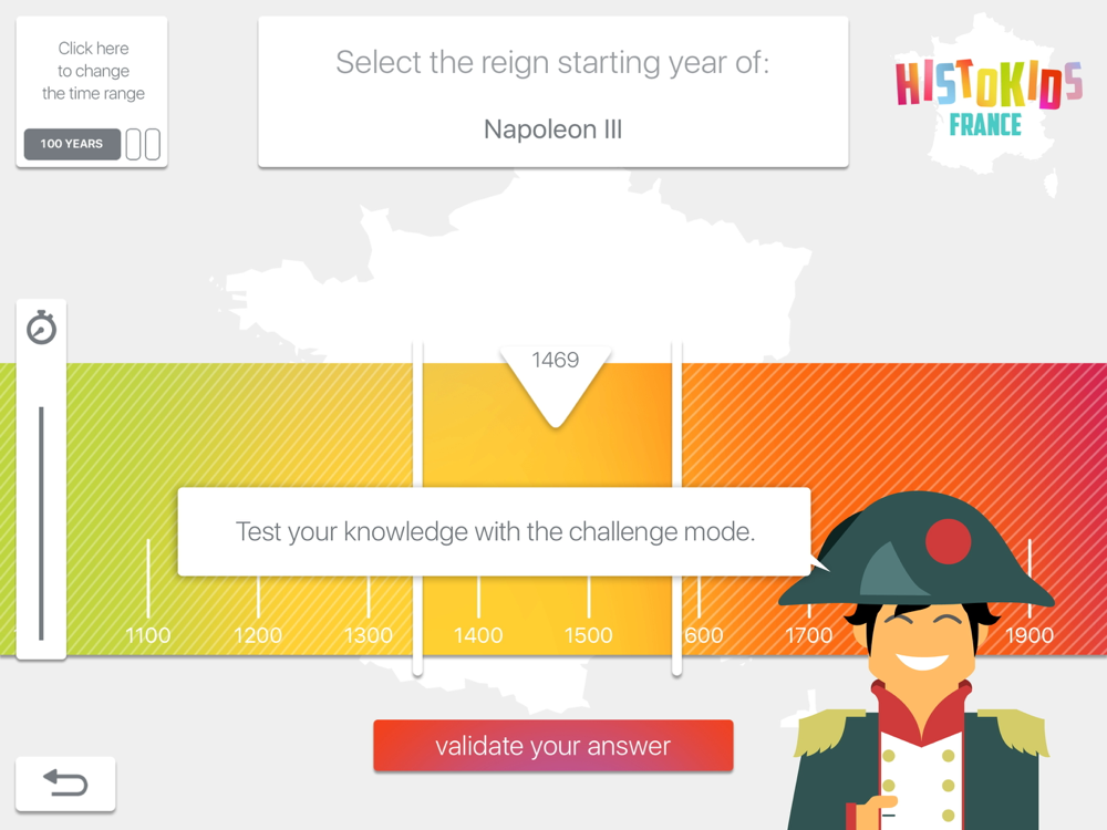 The challenge mode will test your knowledge on key events and periods in a different way: you have to find the right year by putting it on a timeline. The closest you are, more points you get.