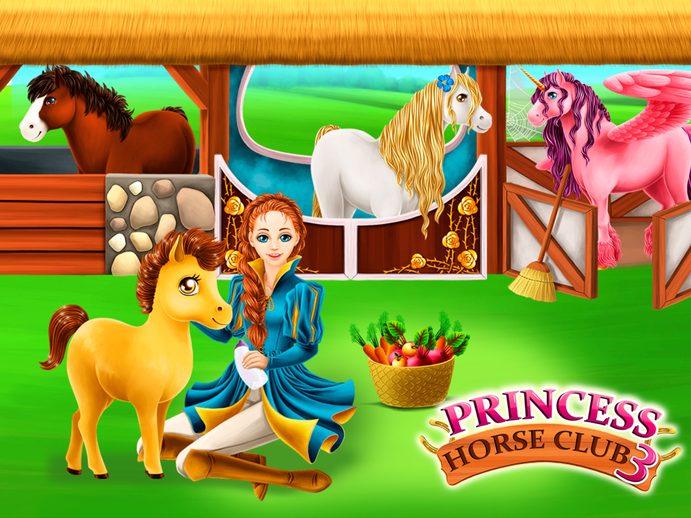 Take care of adorable royal horses - Beauty, Thunder, Daisy, Windy and baby Caramel - and magical baby dragon Draco! Clean up the stables and learn to change horseshoes. Make fresh fruit and vegetable salad for the royal pets. Wash and groom princess’s horses so they all look sparkly and magical!