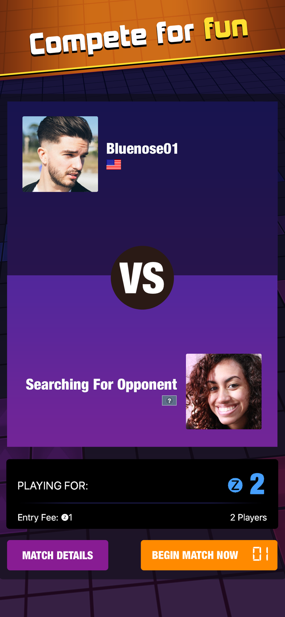 Includes tournaments and head-to-head competitions with real cash prizes (where available).