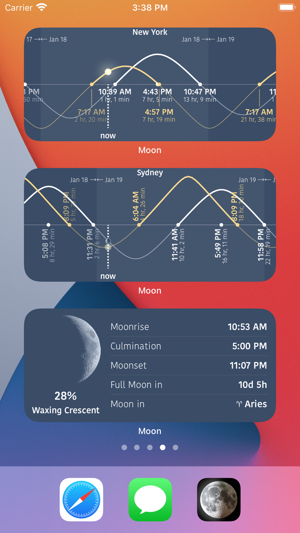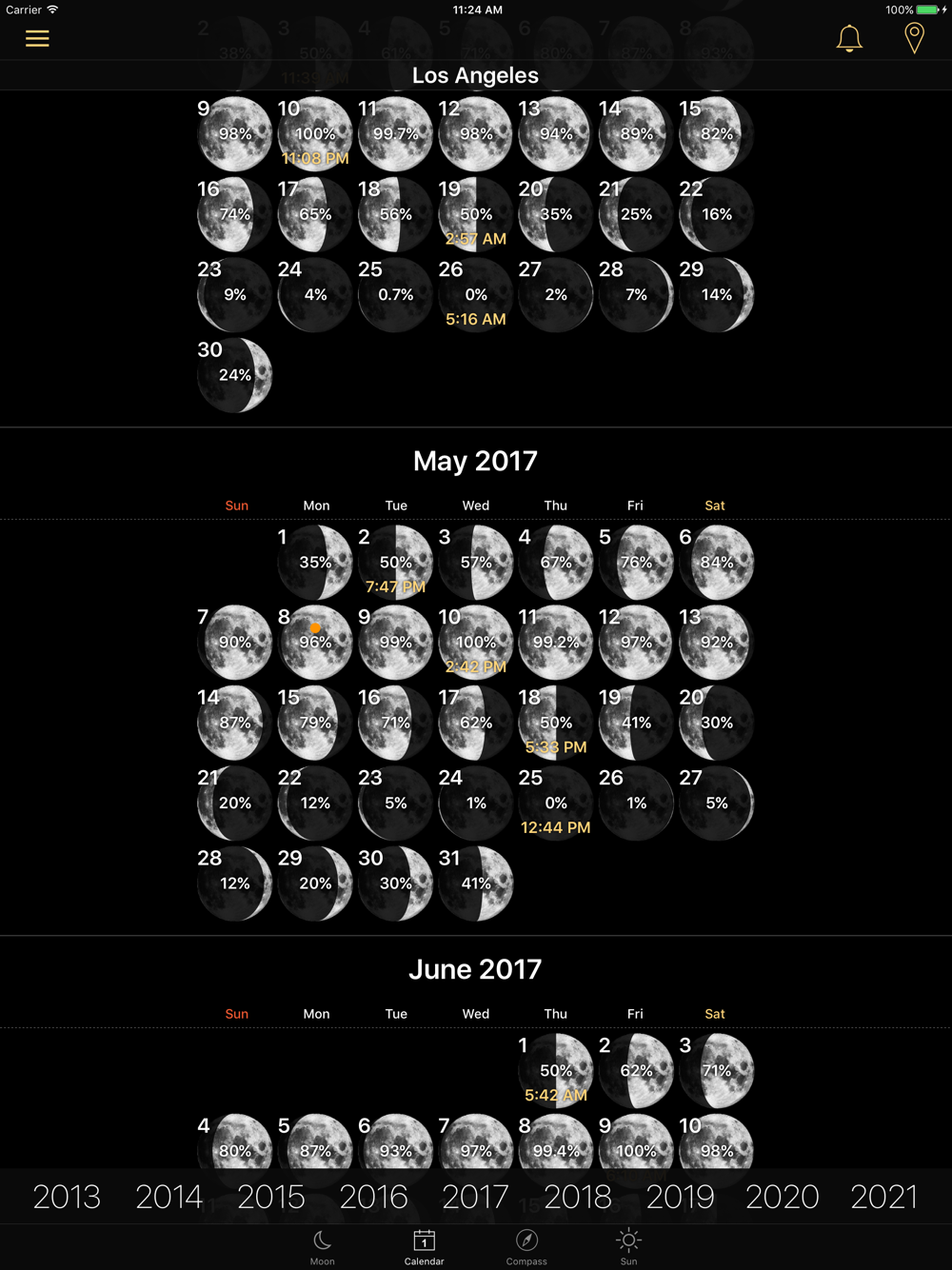 Would you like to get notified exactly one hour before the moonrise? No problem, Moon Phases and Lunar Calendar has you covered. Receive customizable notifications that will alert you to upcoming moon and sun events you're interested in. Create alerts for your exact location and the favorite cities you select. You can also add moon and sun events to your calendar.