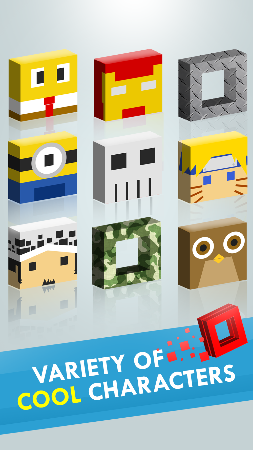 - Collect gems to unlock new characters;