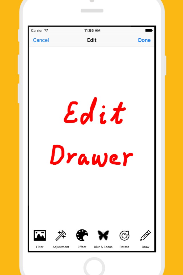 • Edit Drawer app Include: Filter,Adjustment,Effect,Blur & Focus,Rotate,Draw,Splash,Crop,Resize,ToneCurve,Sticker,Emotions,Text... Many many tools and effects and they are all FREE!.