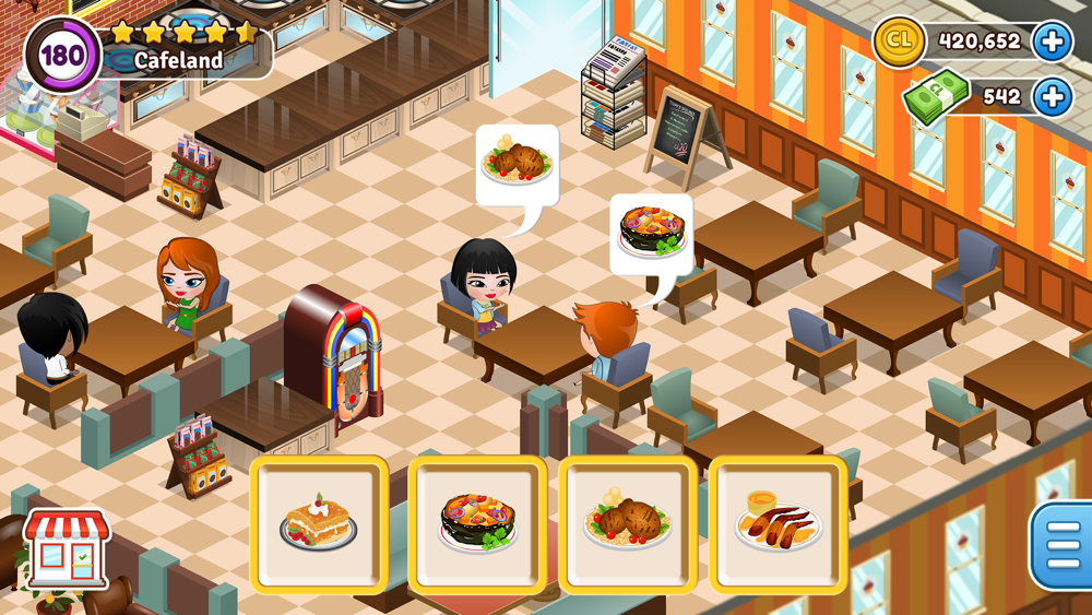 Don't Be Good, Be Great! Decorate and design the place of your dreams in this cooking madness! Prepare delicious desserts, burger, pizza and drinks, cook tasty food to keep your customers happy - From the creators who brought you facebook Cafeland game, it’s a fun-tastic new cooking game!