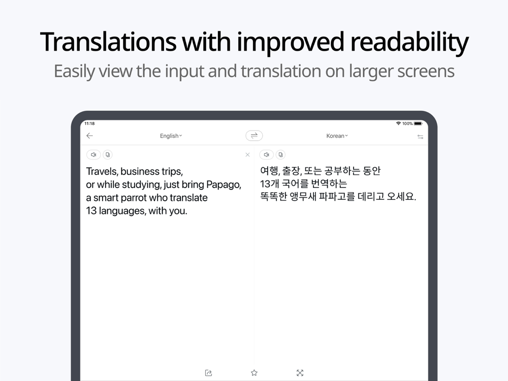 Whenever you need translation during your travels, business trips or while studying a language just bring Papago, a smart parrot who can translate multiple languages for you.