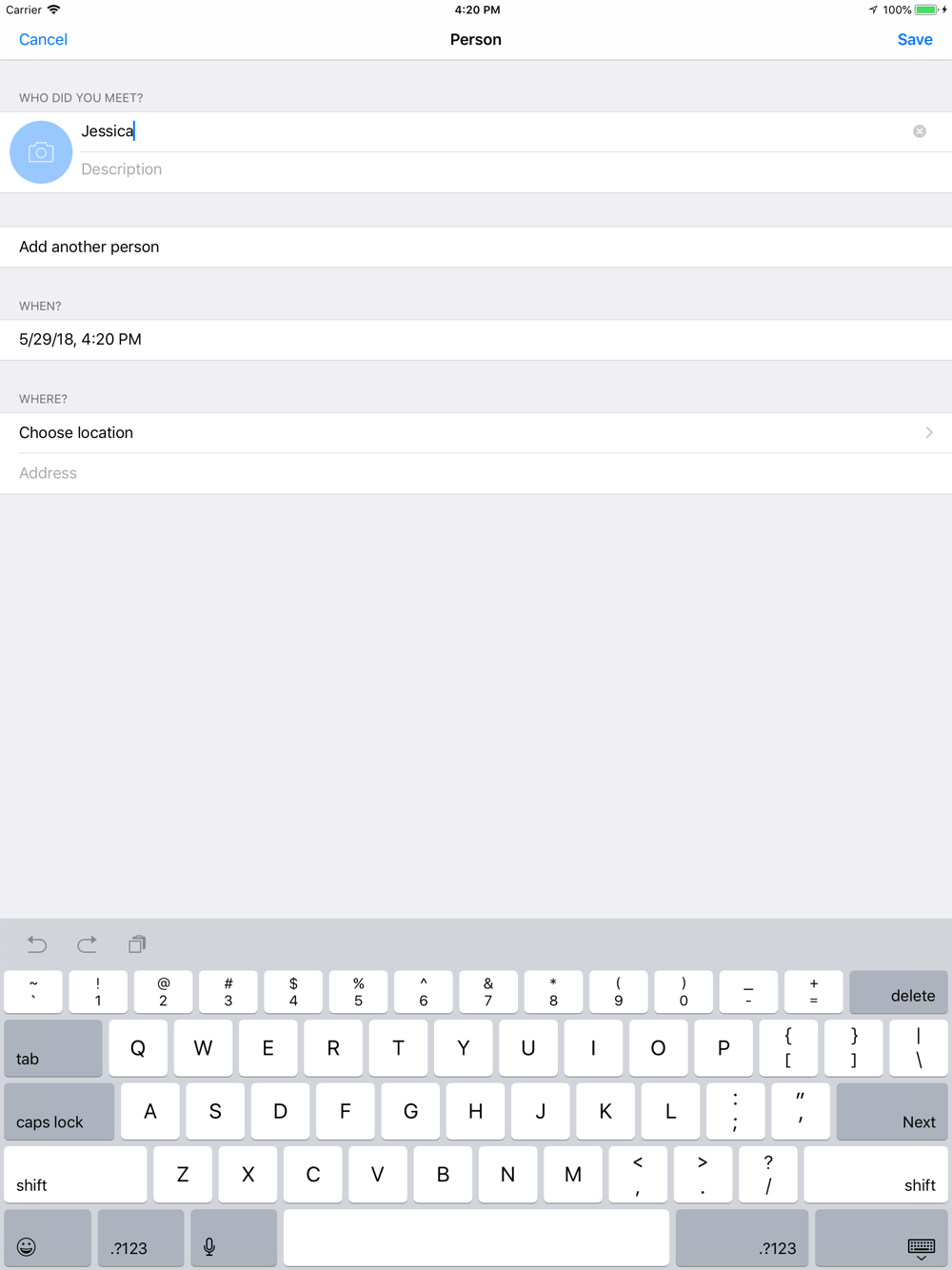 Keep names of persons you meet - super fast and simple. You are never ever going to ask: "Sorry, what was your name again?"