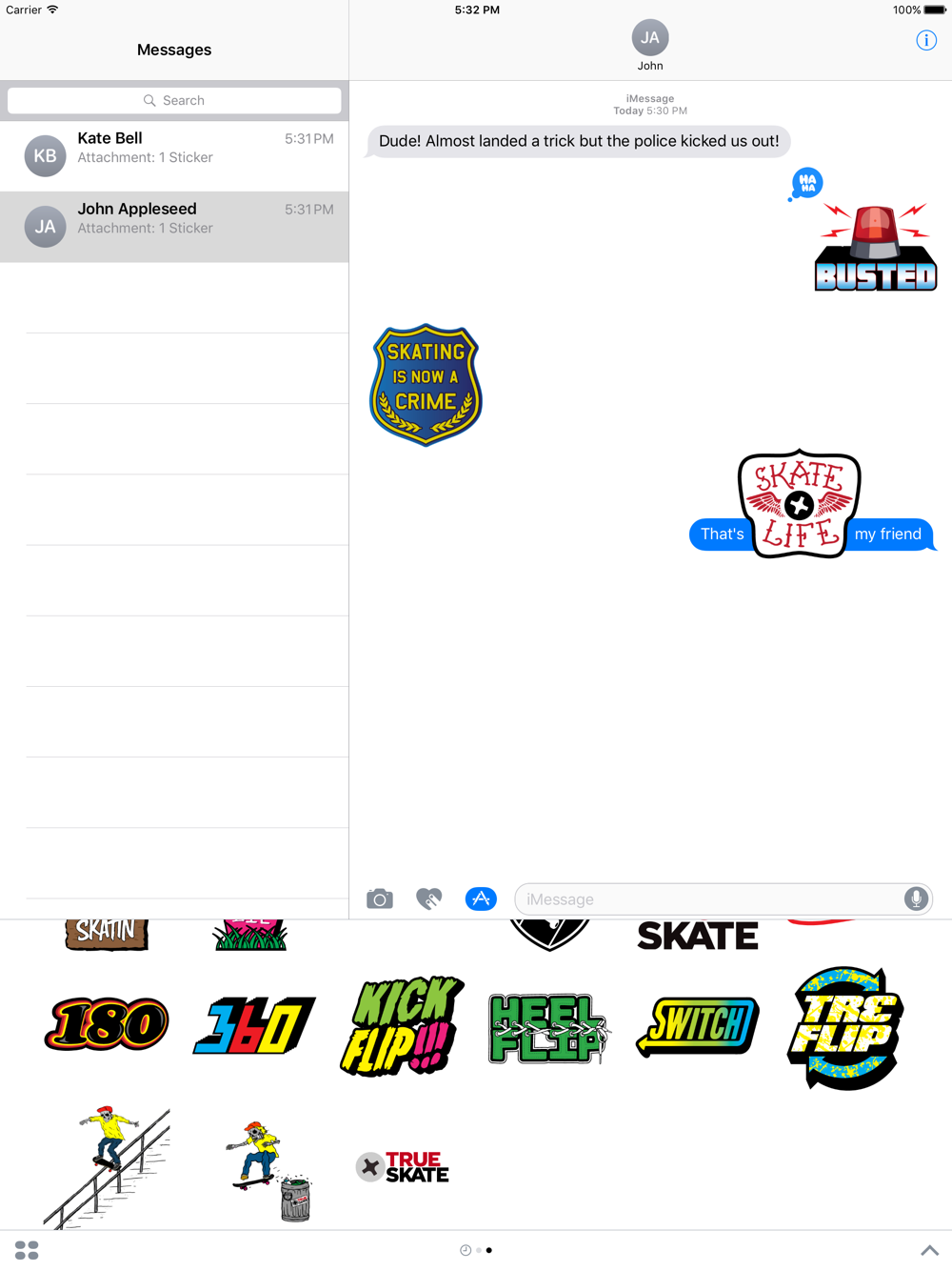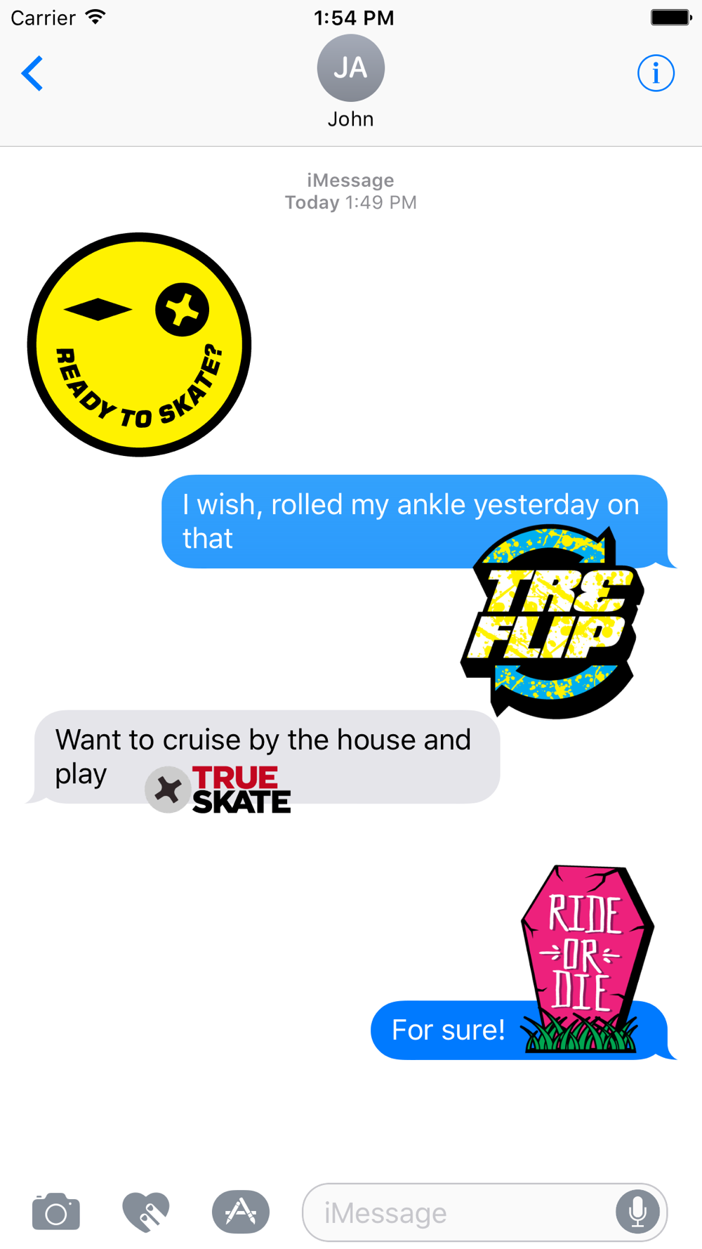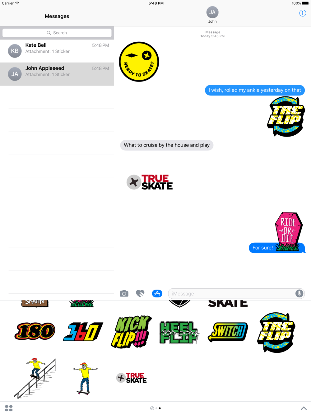 How many times have you tried to express a trick or your skate emotions to your friends through text? The struggle is over with True Skate Stickers, "GAME ON!" Share expressions, tricks, rad animated skate stickers and express your skateboarding self with the rest of the world. Let's start with 21 stickers and stay tuned for more so you can combine more tricks and share more of our every day skate life.