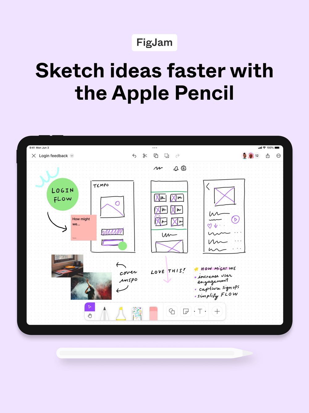 - Sketch with the Apple Pencil to explore and iterate on ideas more fluidly
