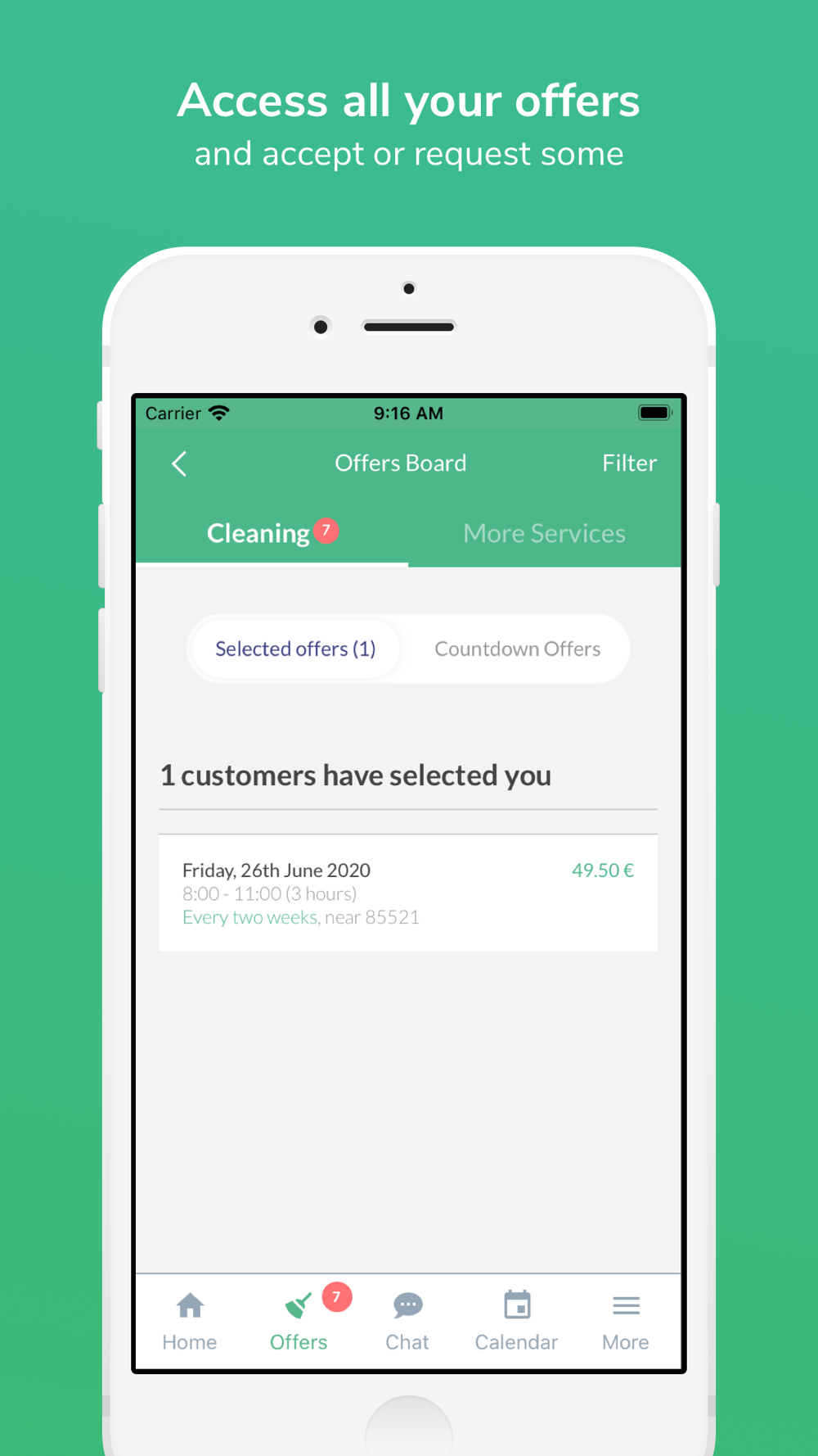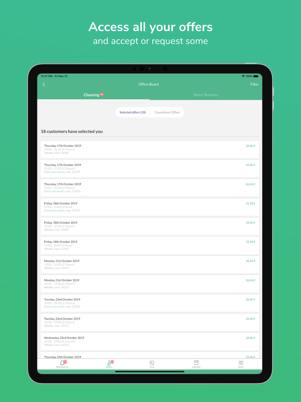 + Calendar View: See all your confirmed jobs and job offers in the calendar view, including customer address, to help you manage your schedule.