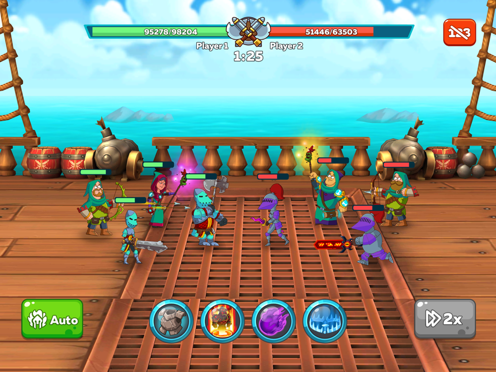 Your pudgy warriors look great in their shining armor! Nourish and train your troops, and they’ll crush the armies of Grav the Mighty Brainpan, find the shelter of the fearsome OM-NOM, put the Abyss Lord back in his place, and also burn down a couple of enemies’ castles!