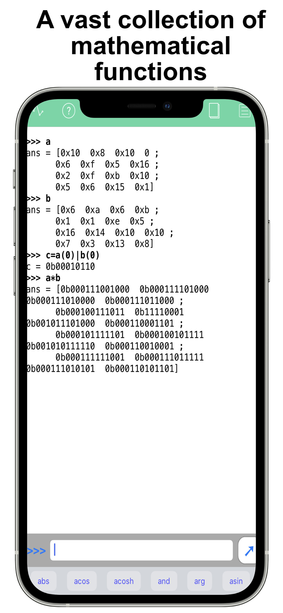 Math-c can be used as a simple tool in math, programming, chemistry, physics, engineering and in applications as the following: