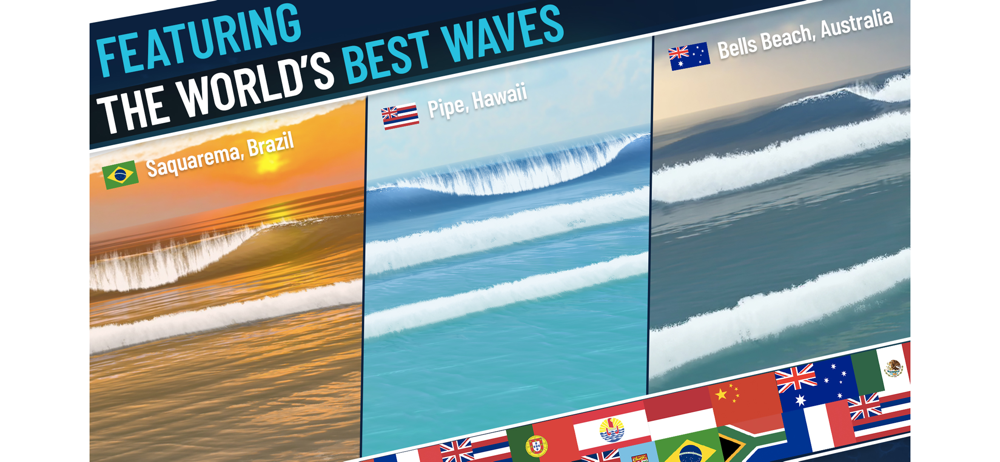 Realistic touch based physics enable complete control of your surfer in real time. Use one finger, your thumb or mind surf with two fingers like the Pros.