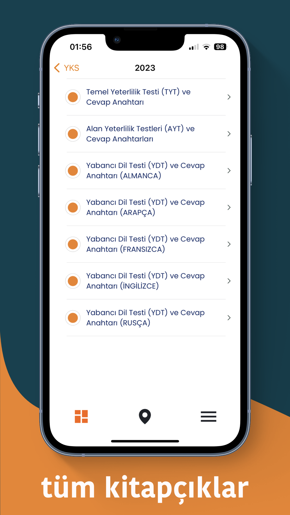 Merhaba! Sınavlara hazırlanmak artık çok daha kolay ve etkili! Sınav Takip Uygulaması ile ÖSYM'nin çıkmış sorularını, 2011 yılından 2023 yılına kadar tek bir yerde bulabilirsiniz. AYT, TYT, ALES, KPSS, MSÜ, YÖS, LGS(MEB) ve daha birçok önemli sınavın soruları ve cevap anahtarlarına kolayca ulaşın.