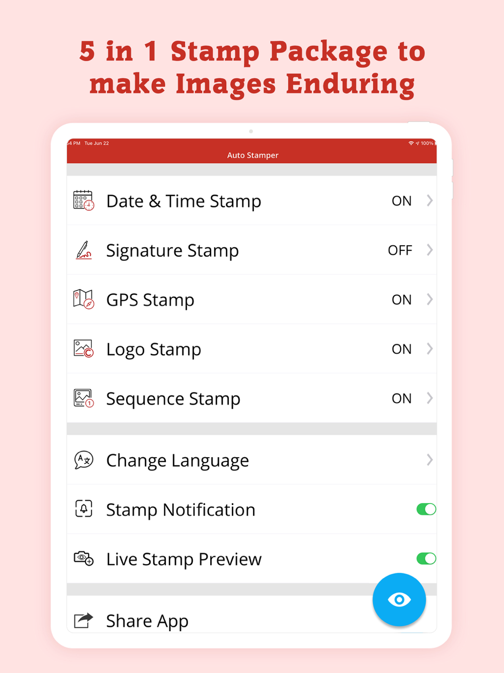 - Simple designed user interface with manual “ON/OFF” functionality for auto stamps makes it easier to toggle between them.