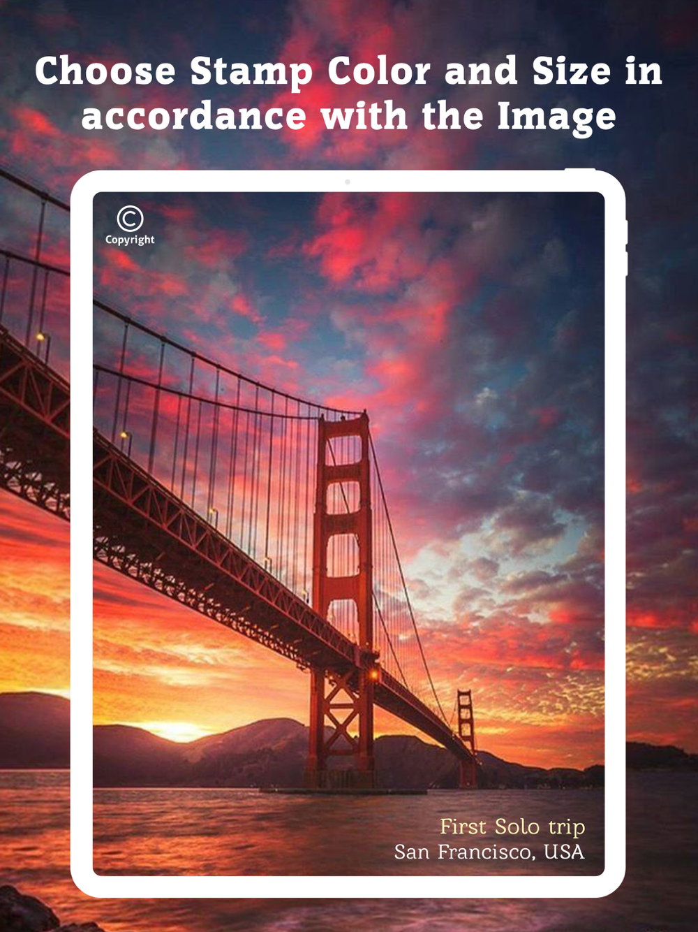 Add a copyright Logo as custom stamp on your Images securing them from any misuse.