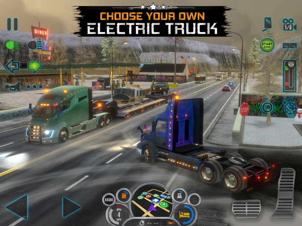 ● Pair up with fellow truckers of America and Europe and drive together in online Multiplayer