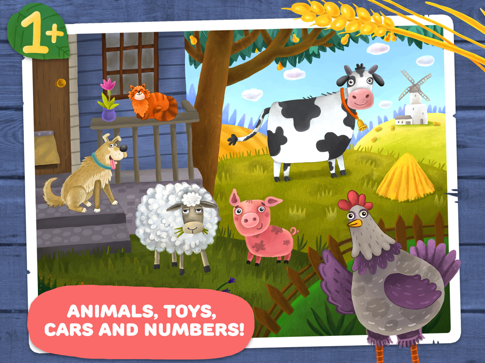 Talk with your kid about the animals that he can meet in the wood or in the village. Repeat the sounds which are made by the animals. Ask your baby to bring the toys that he will see in the application. Let him show his cheeks or eyes, repeating after the boy and the girl. Ask your child interesting questions. What types of transportation have they traveled on? What number do they like best? Converse with your child and teach them to discuss.