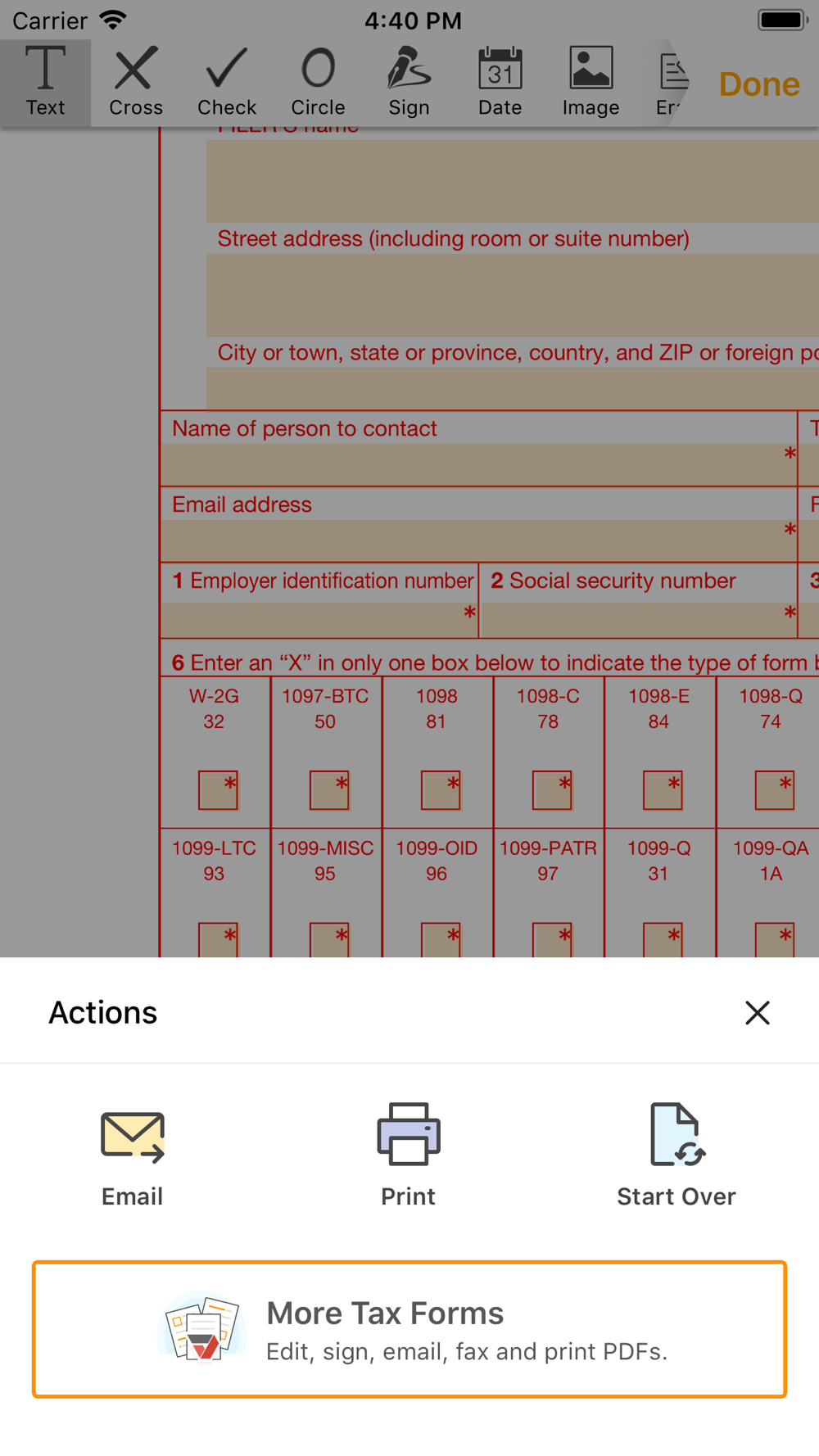 Complete, send and print 1096 forms quickly and easily on your iOS device