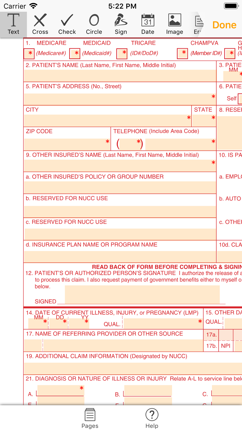 Fill out and submit 1500 CMS form with your iPhone or iPad