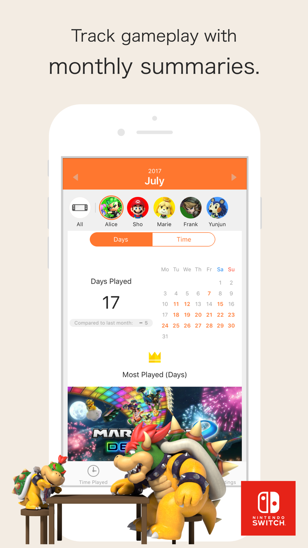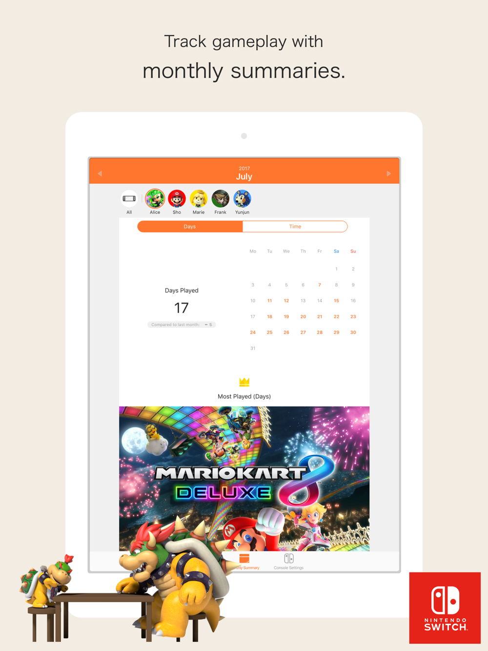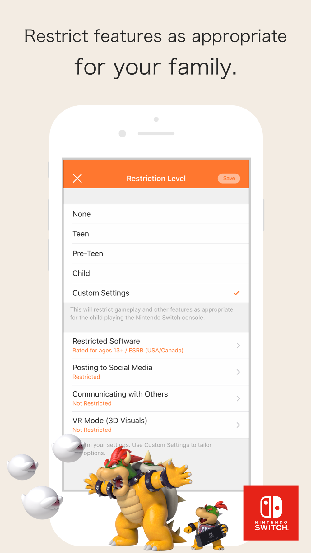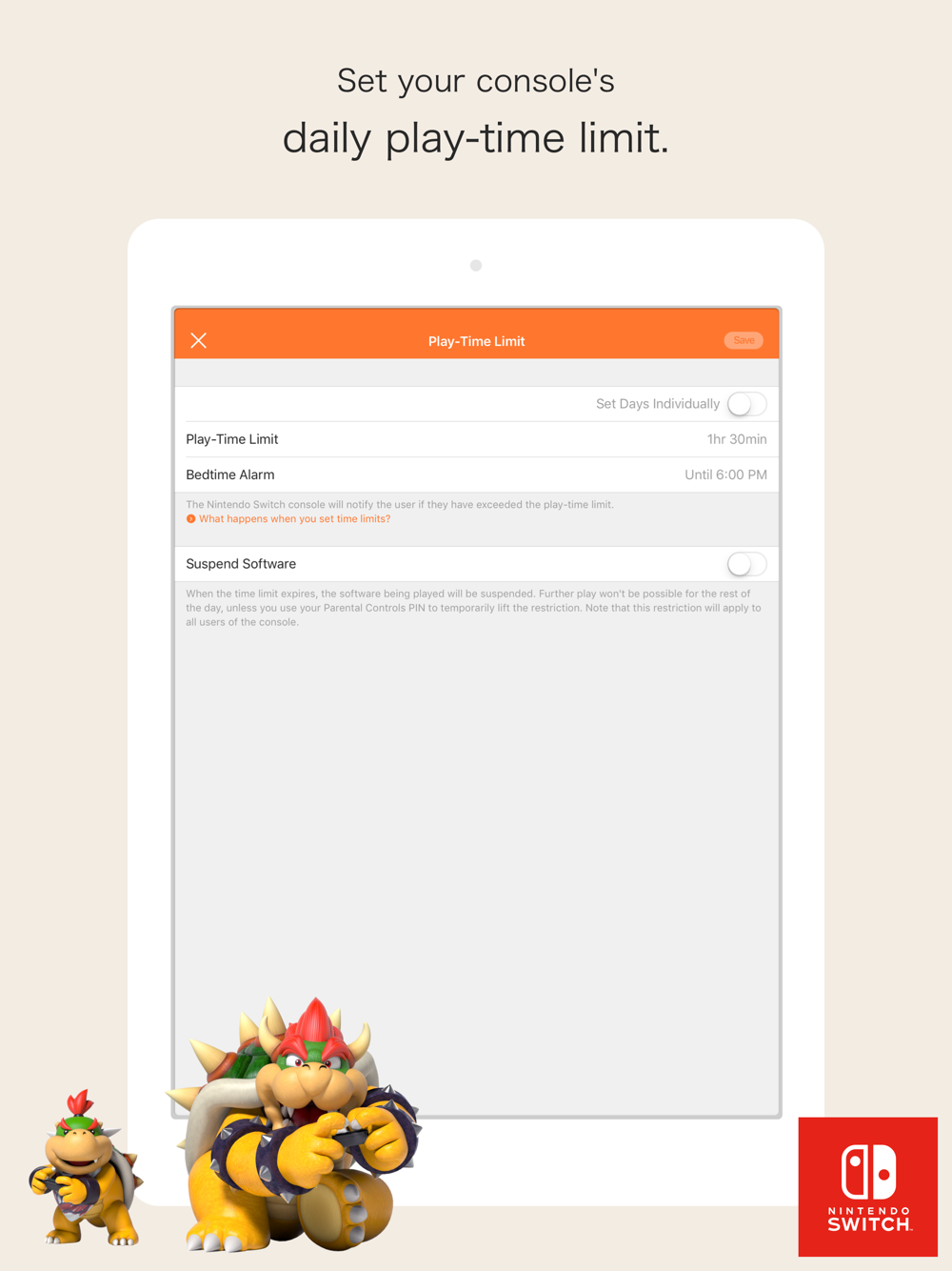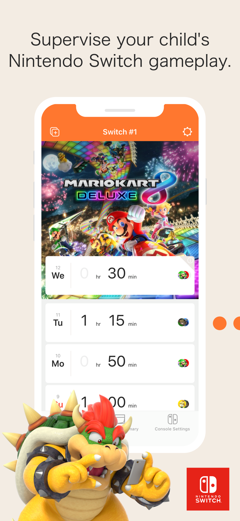 Nintendo Switch Parental Controls™ is a free app for smart devices to keep you engaged with your family's gaming activities on Nintendo Switch.