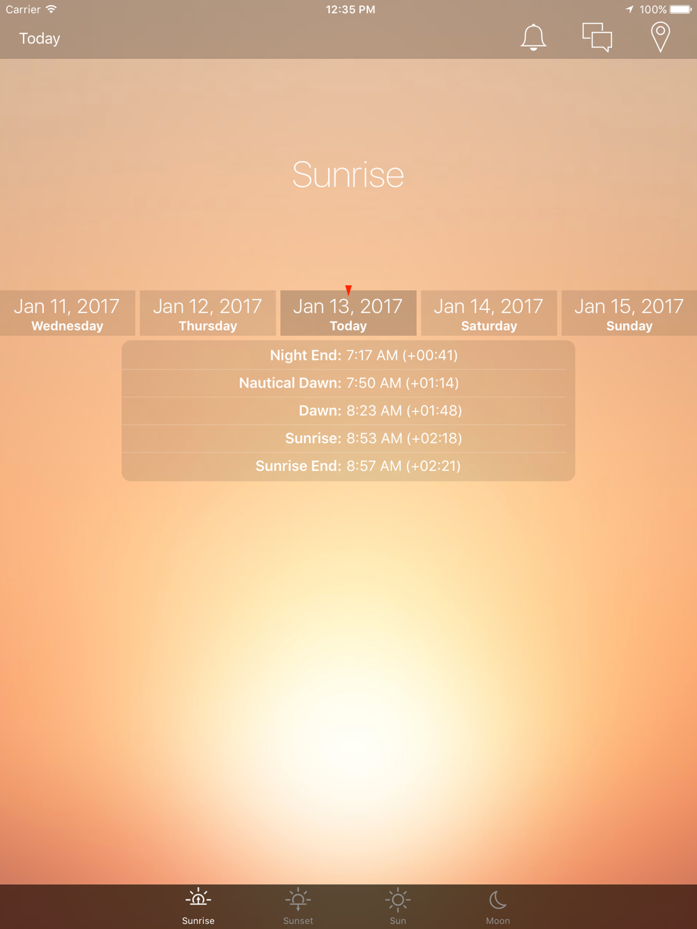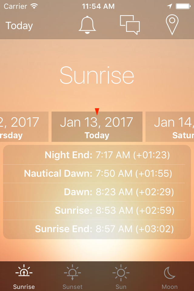 - sunrise time and time left to the sunrise