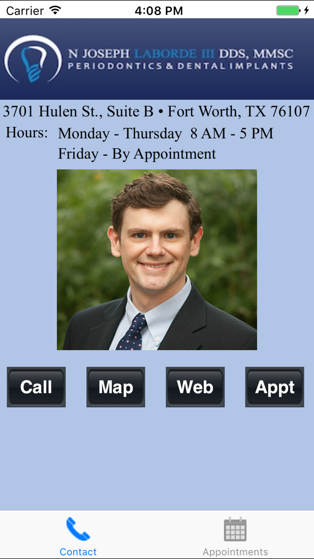 If you are already a patient of Joseph Laborde, then you will want to install this app. It provides you with an easy way to manage your dental appointments and to request new appointments. You can also use this app to contact us by phone, email, or to get driving directions to our office.