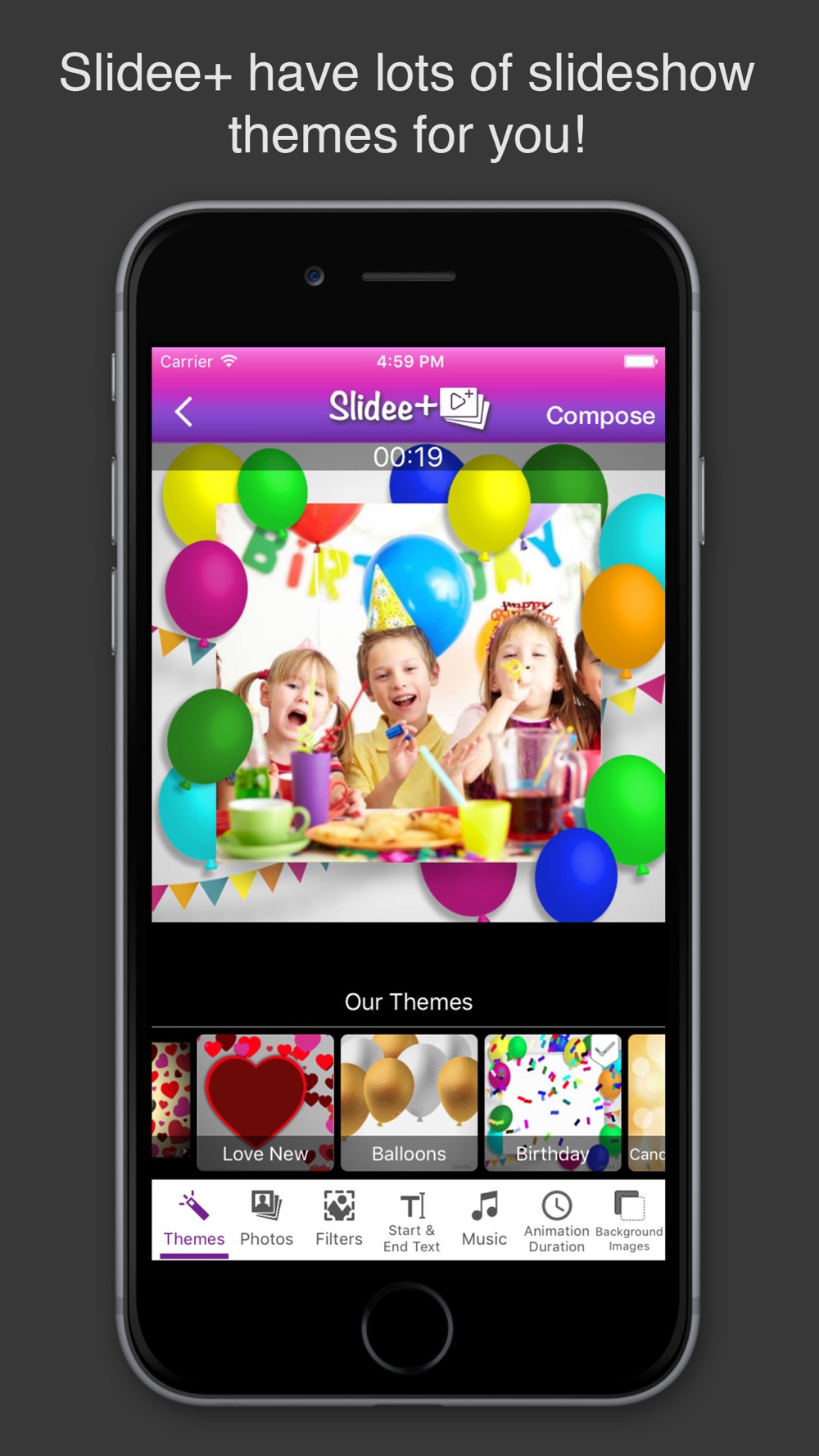 Slidee+ will help you to make beautiful slideshows from photos with background music in an easy and quickest way.