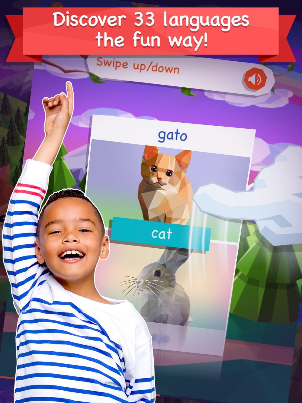 Download the language app today so your kid can learn Spanish, French, German, Portuguese, Italian, Russian, American English, British English, Dutch, Norwegian, Danish, Swedish, Korean, Japanese, Chinese, Arabic, Greek, Romanian, Vietnamese, Indonesian, Hindi, Hebrew, Polish, Bulgarian, Ukrainian, Czech, Croatian, Finnish, Farsi, Afrikaans, Hungarian, Turkish or Thai for FREE.