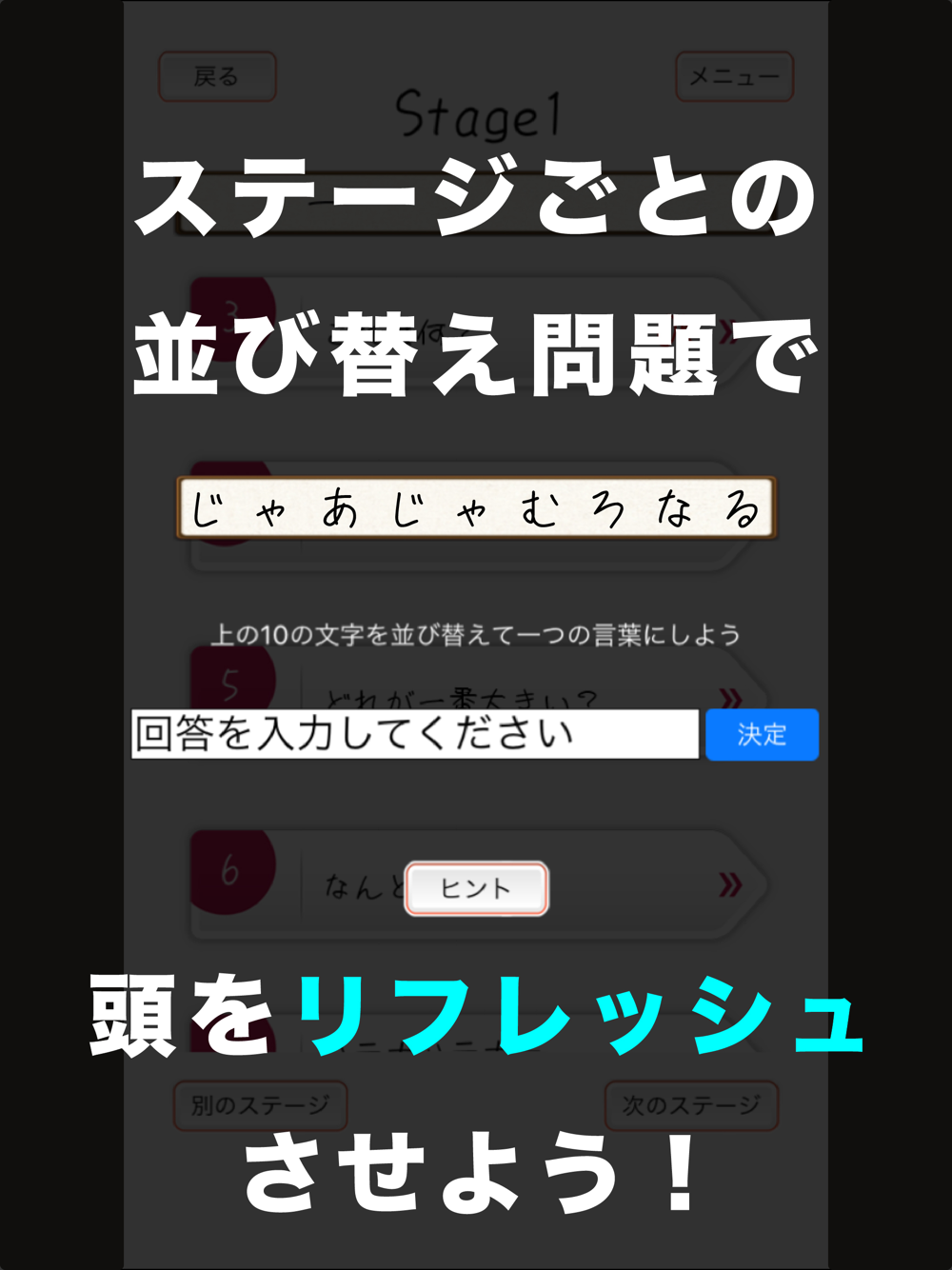 「次のステージ」を押して、並べ替え問題にチャレンジしましょう。