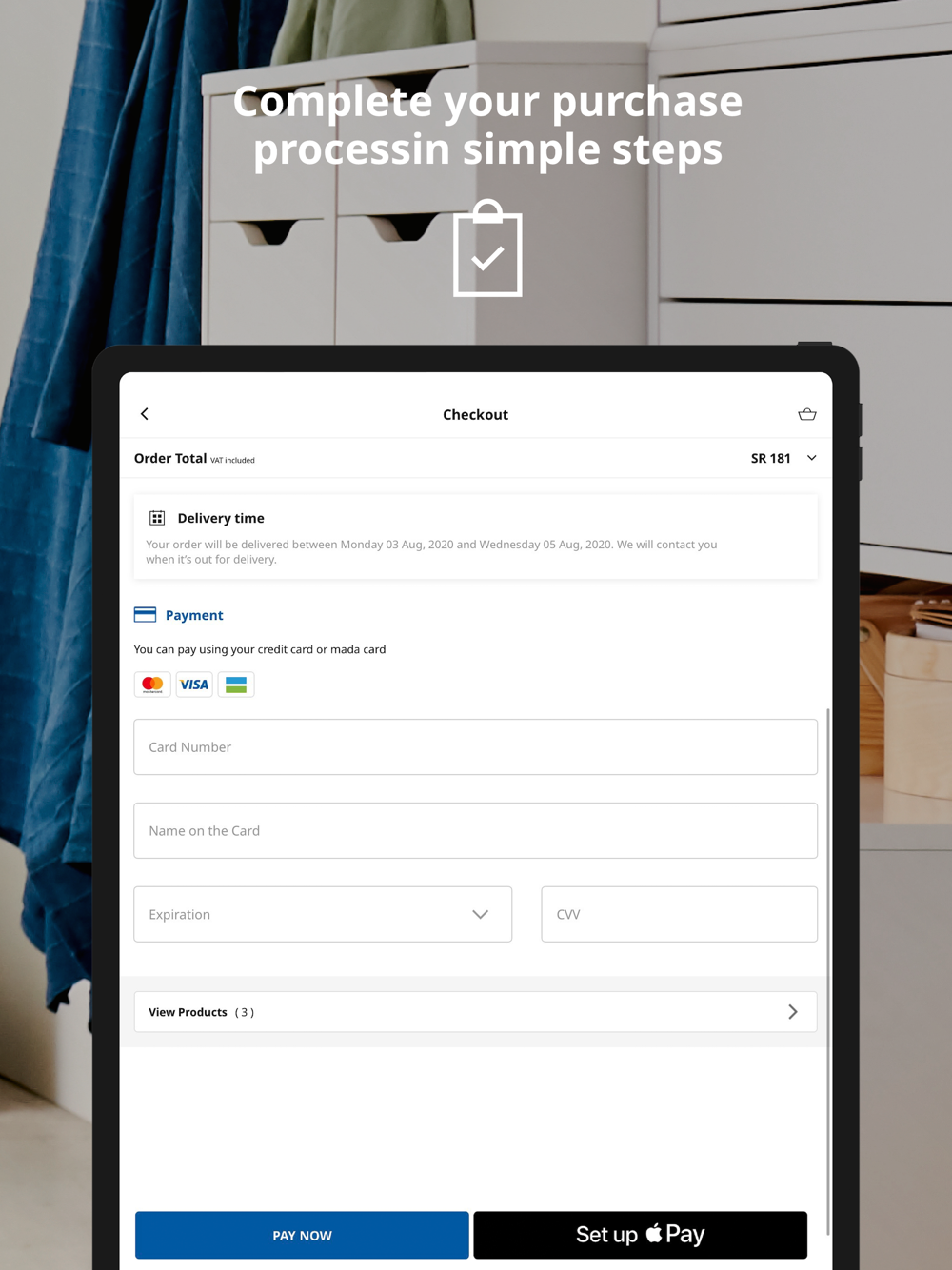 With the IKEA Saudi app, you will be able to find different payment methods that make it easier for you. You will be able to finance your bill with different payments. Your house furniture is a few clicks away.