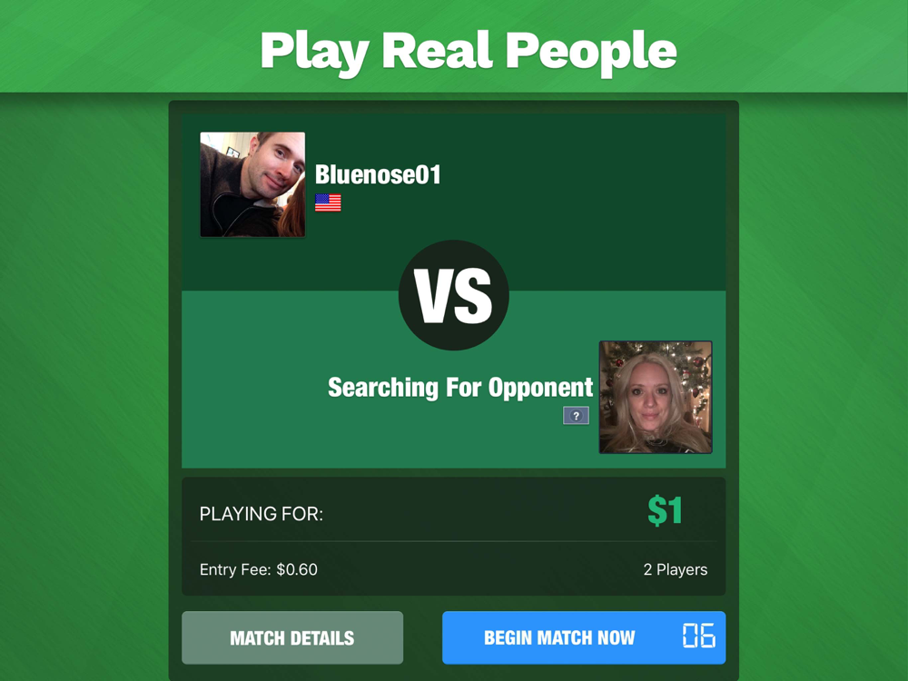 Play for fun or play in head-to-head games for cash prizes (where available).