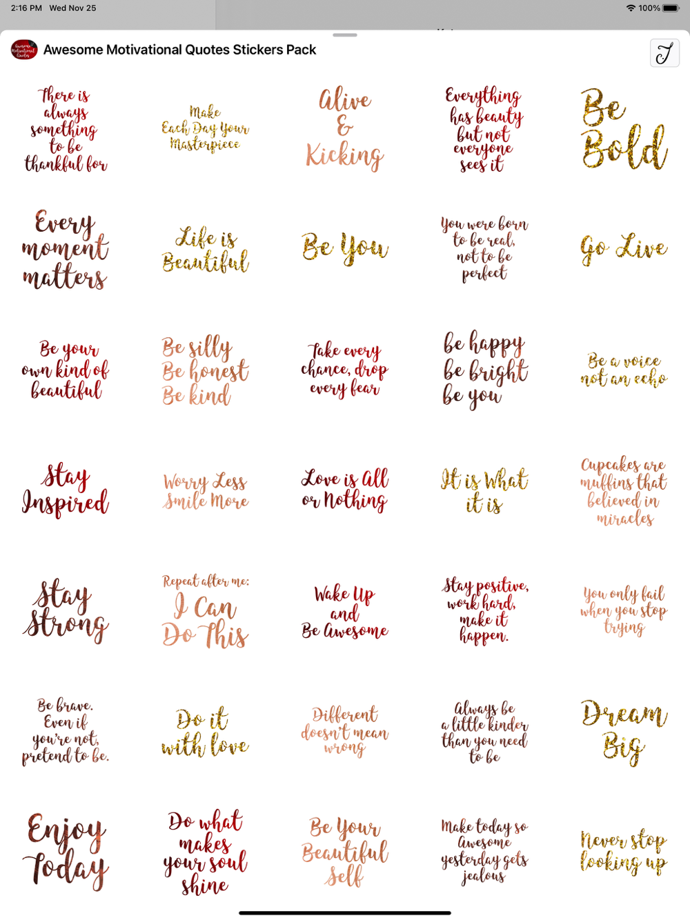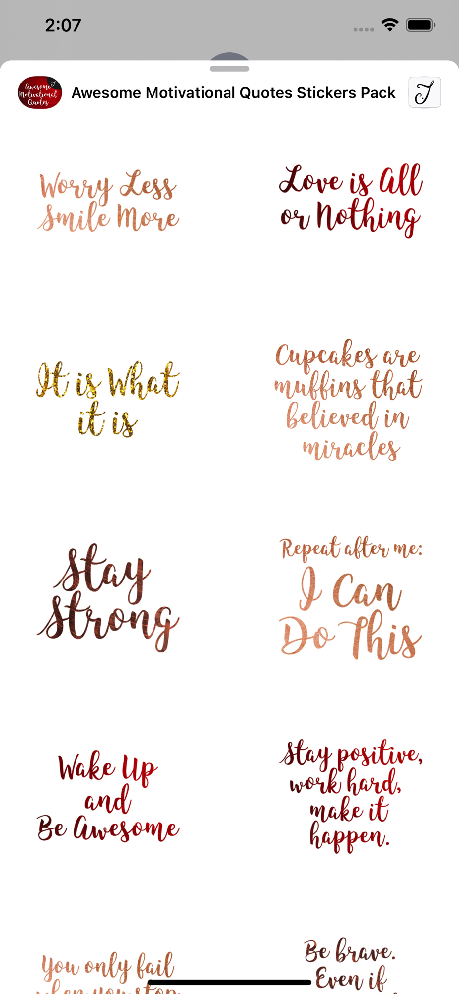 Besides the normal greetings messages that you send, why not add a hand touch in your hi-technology device, serve your artistic taste with this iMessage stickers and at the same time encourage, nurture, care and uplift your friends, family and people you know that need some encouragement at the moment. You can place the stickers on the conversation bubbles, images, or with the other stickers that come with this pack. Make your text message more personal today, create those smile on your receiver face that they will never forget and let them know how much you care for them and how much they mean to you.