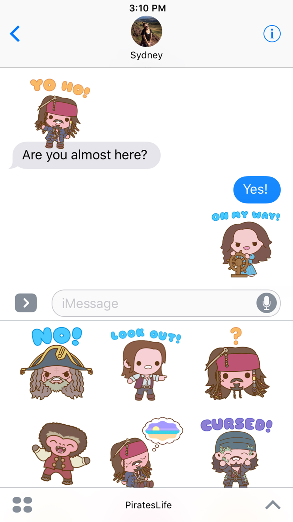 ARRRGH chat like a pirate. Add some “Yo Ho!” and “Savvy” to your messages with this Pirates of the Caribbean animated sticker pack that includes characters like Jack Sparrow, Will Turner, Captain Salazar, and Captain Barbossa!