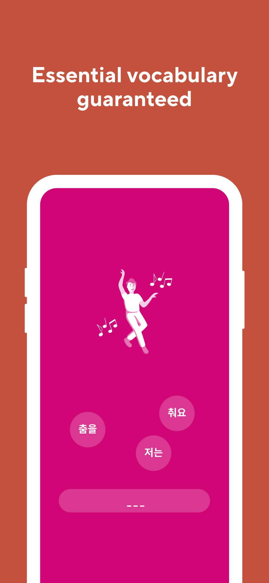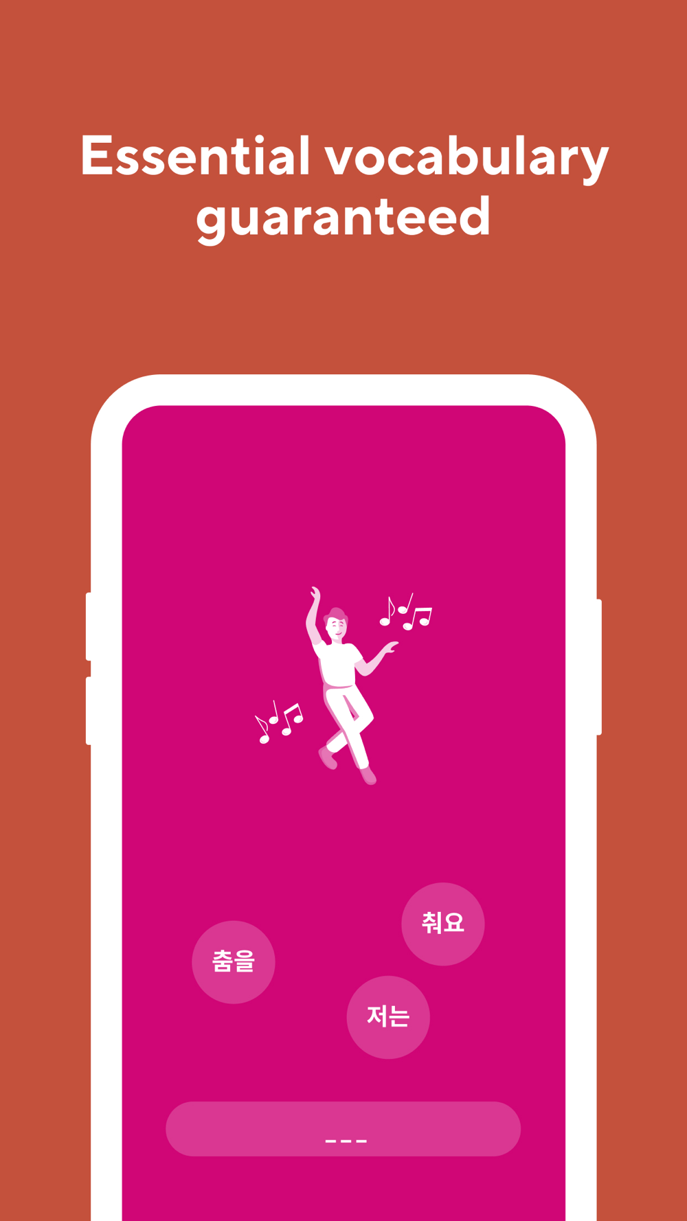 Vocabulary only: Zero grammar, just handpicked practical words. That’s our focus and we do it extremely well. The app teaches the Korean “alphabet” Hangul (hangoul) too!