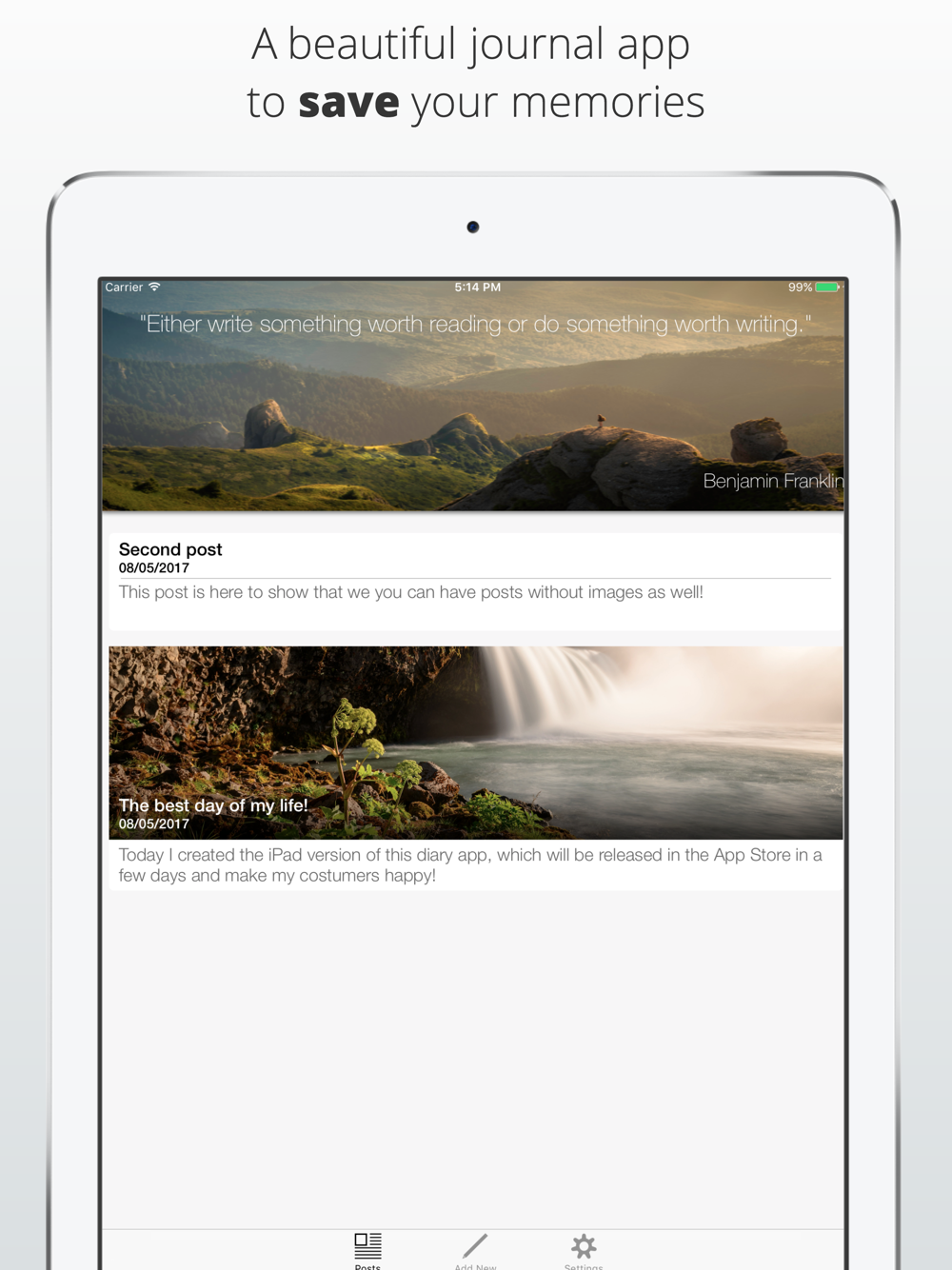 It reminds you to update your journal and write a few words every day. You can then read the previous posts.