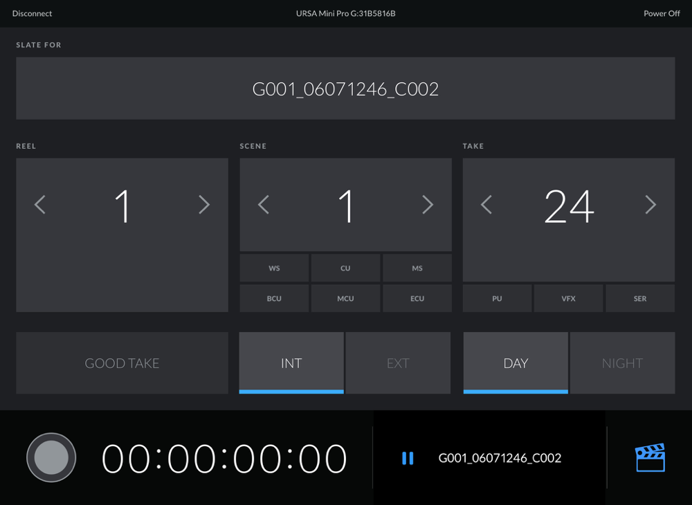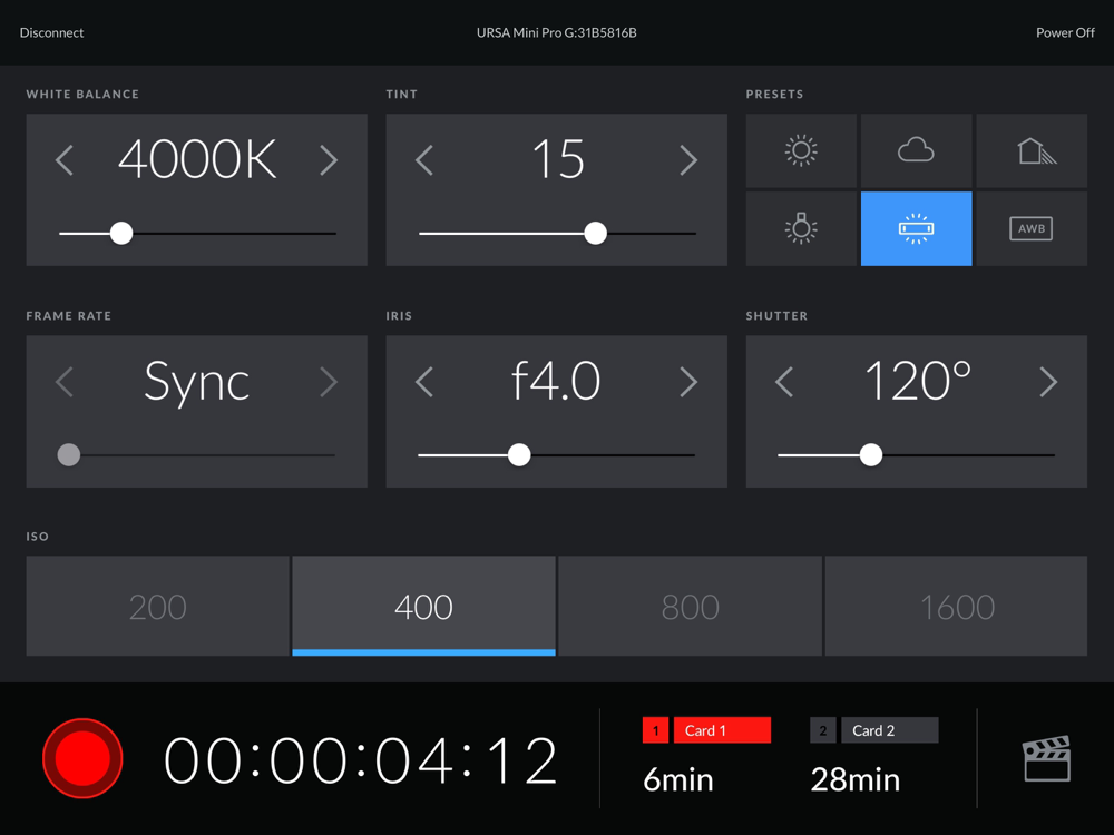 Get full control of your camera from up to 30 feet away, so you can remotely change camera settings, control the lens, adjust metadata and trigger recording. On URSA Mini Pro cameras you can also remotely power the camera on or off. Blackmagic Camera Control is ideal when you need to control cameras in hard to reach places such as on cranes, drones, gimbals and more! It’s also a great solution for camera assistants who need to quickly update metadata such as shot, scene and take numbers.