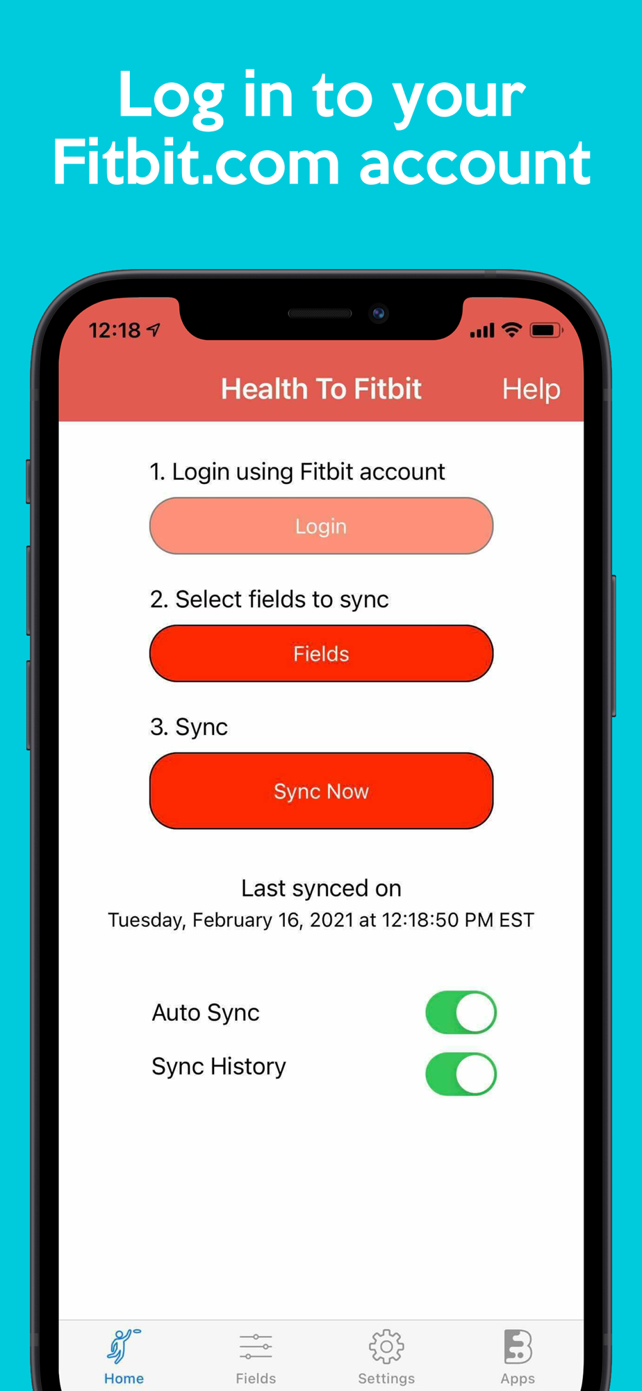 2. Pick the fitness fields (Steps, Weight, Bodyfat) you want to sync with your Fitbit account.