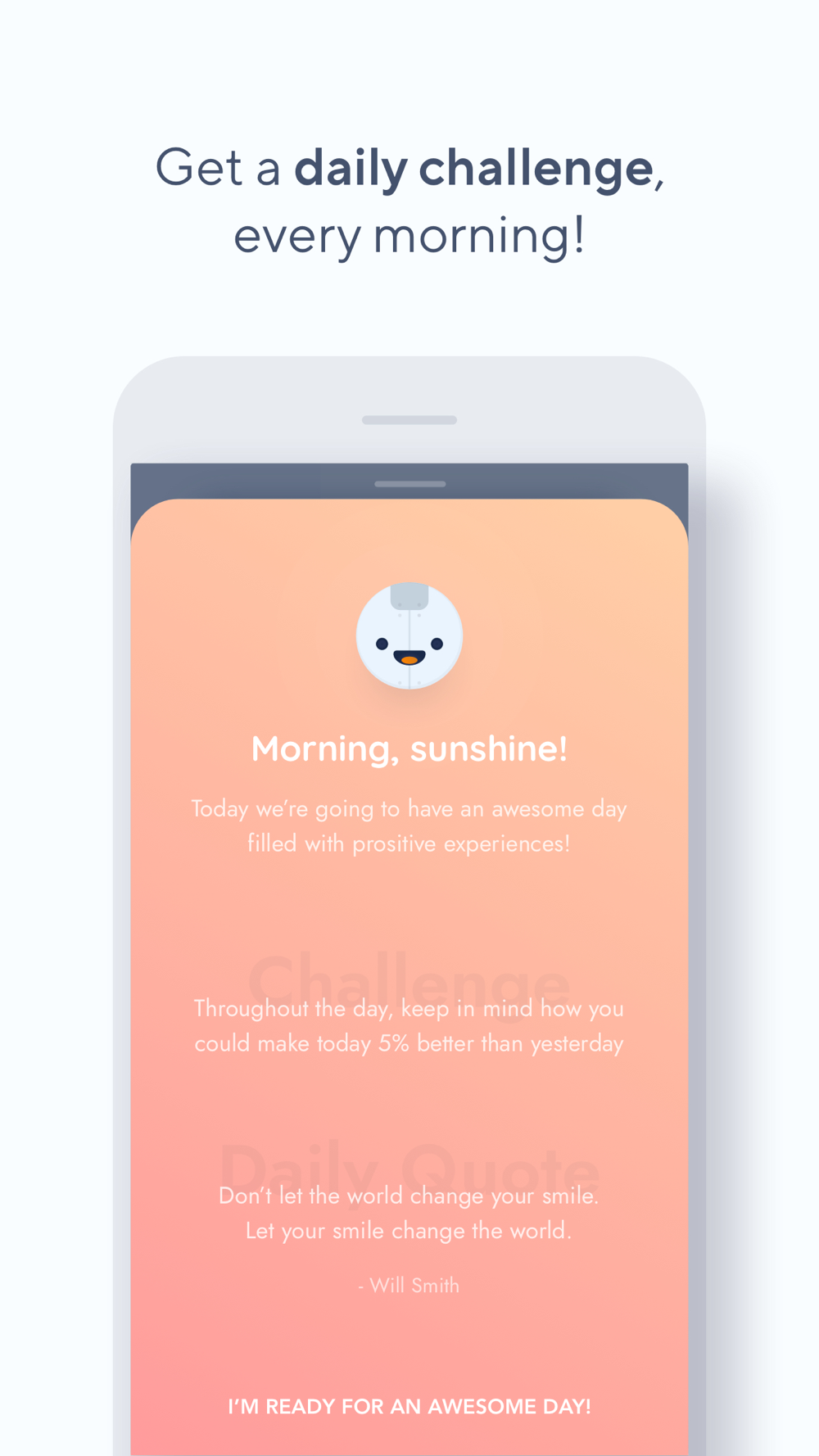 • Write down how you feel each day. Morning daily motivation quotes & challenges, evening daily insights, and whenever you need to vent.