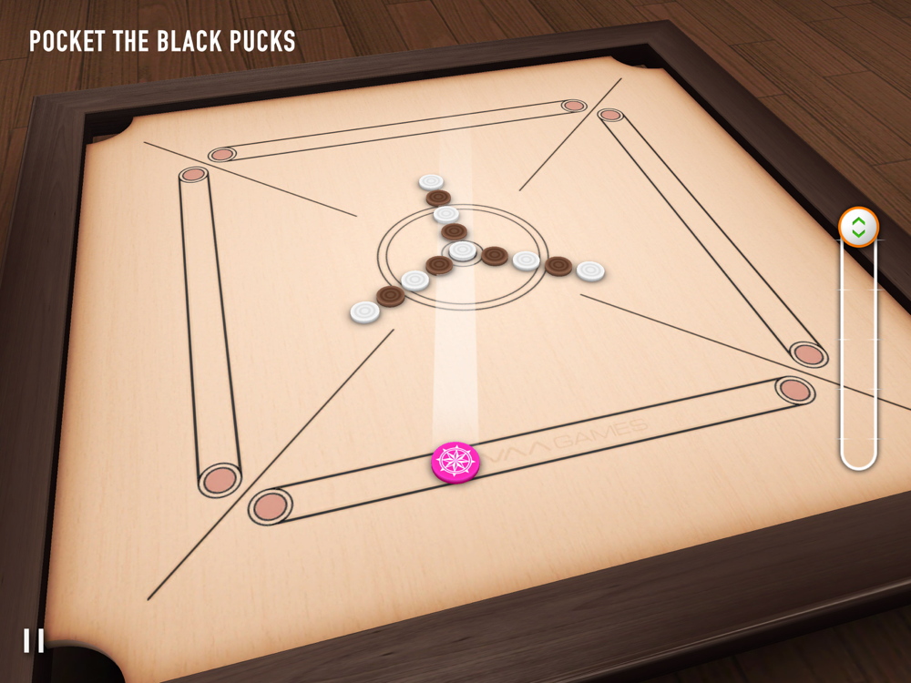 In Challenge Mode, you have to pocket only the black pucks to finish a level. If you pocket a white puck then the level fails. There are total 80 Challenge Levels.